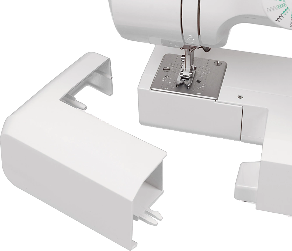 быстросъемная лапка, дополнительный подъем лапки, отсек для хранения принадлежностей, подсветка, рукавная платформа, ручка для переноски