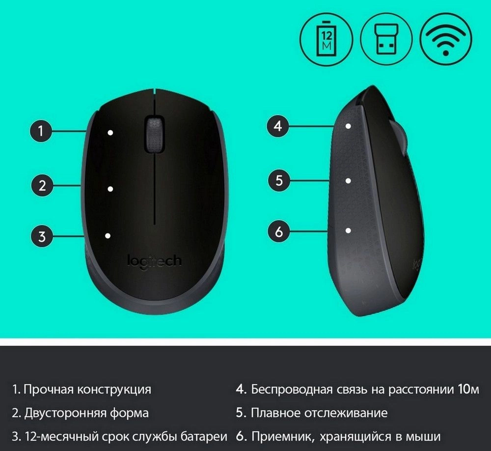 черный/серый оптическая 1000dpi беспров. USB для н...