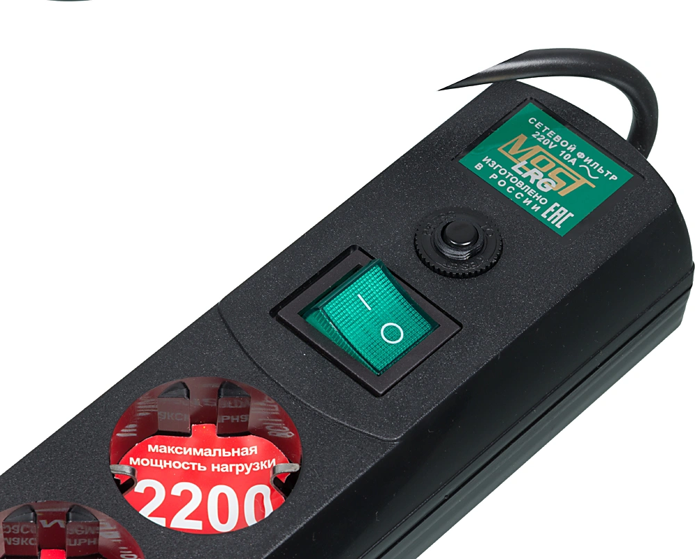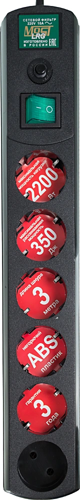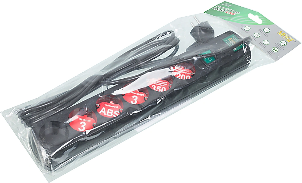 3м (6 розеток) черный (пакет ПЭ)