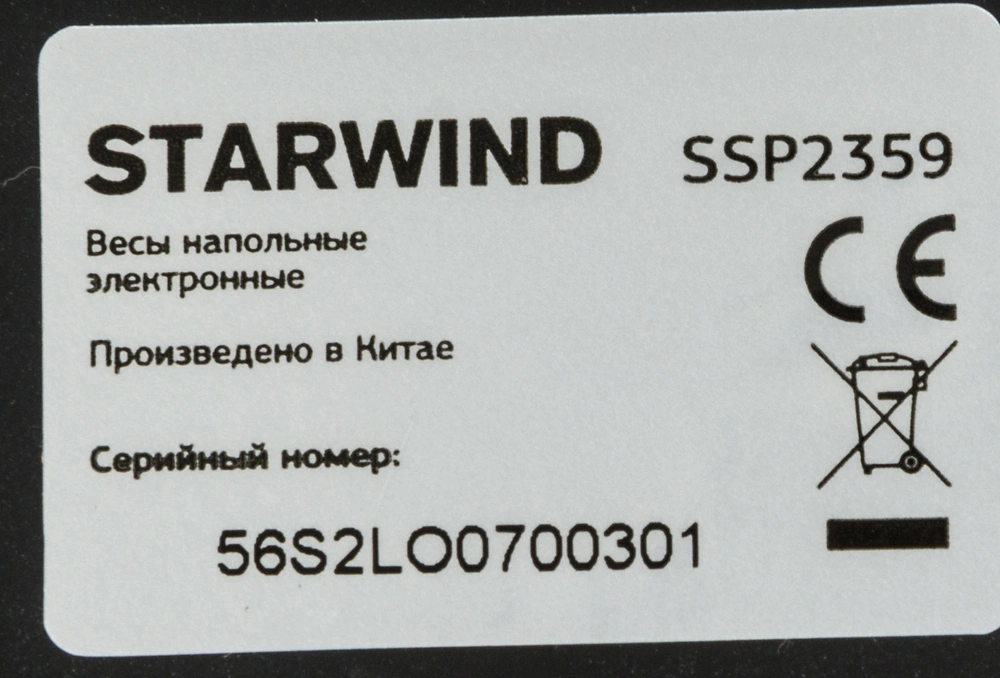STARWIND SSP2359 оборудованы датчиком перегрузки, индикатор которого находится на табло. Для экономии заряда батареи прибор обеспечен функцией автоматического отключения. Табло отключится через несколько минут после того, как вы сойдете с платформы.