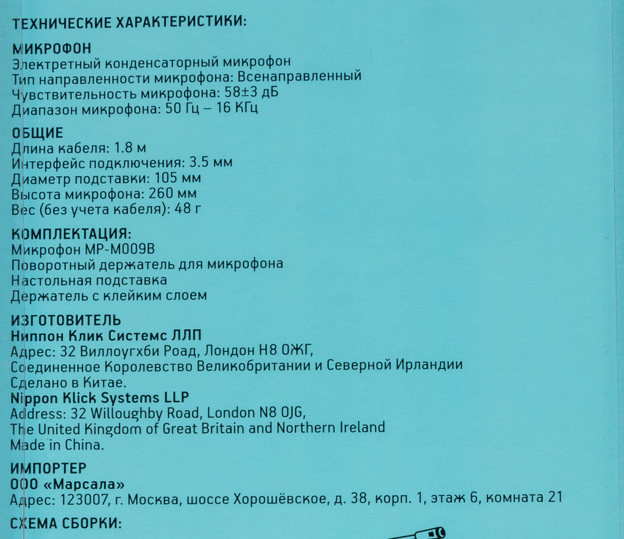 Микрофон обладает высокой чувствительностью -38 дБ: он хорошо улавливает звуки даже с расстояния. MP-M009B работает в частотном диапазоне 100 Гц - 16КГц, что делает его подходящим для голосового общения по интернету.