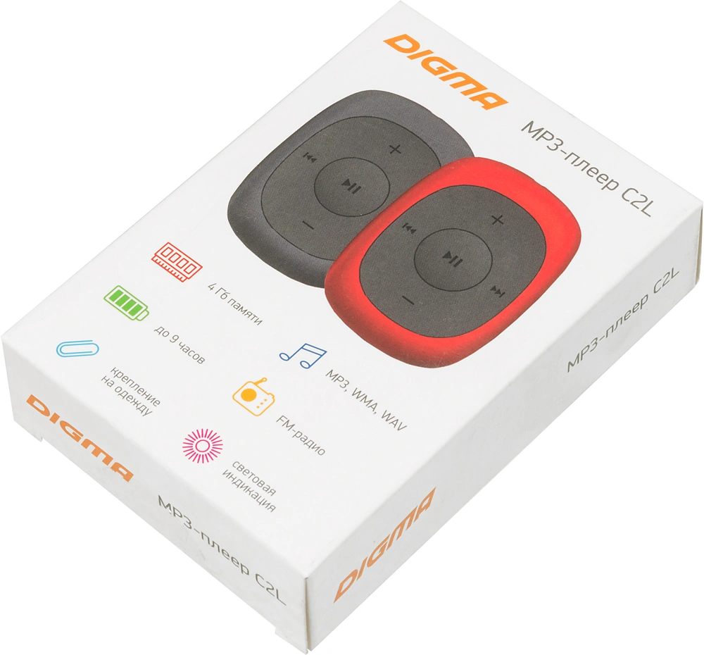 MP3-плеер DIGMA C2L – универсальный музыкальный помощник. FM-радиоприемник позволяет прослушивать популярные радиостанции, а поддержка популярных форматов аудиофайлов WAV, MP3, WMA дает возможность не конвертировать музыку для последующего воспроизведения.
