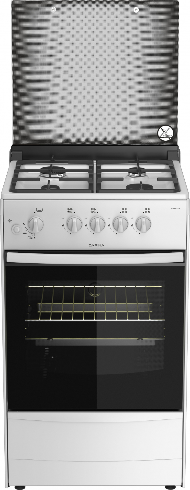 Фиксированное положение Малое пламя; Двойное стекло дверцы духовки; Газконтроль духовки; Подсветка духовки; Интегрированный электророзжиг горелок стола;