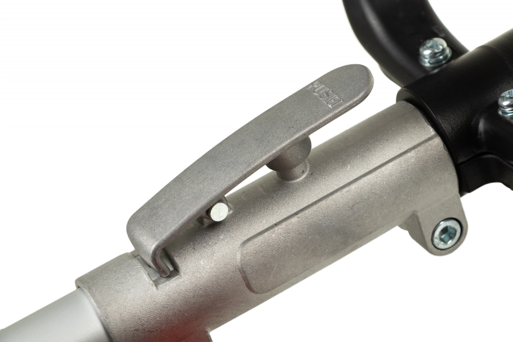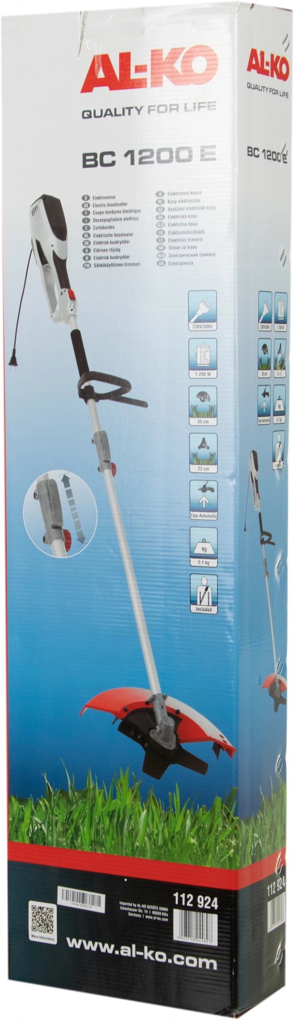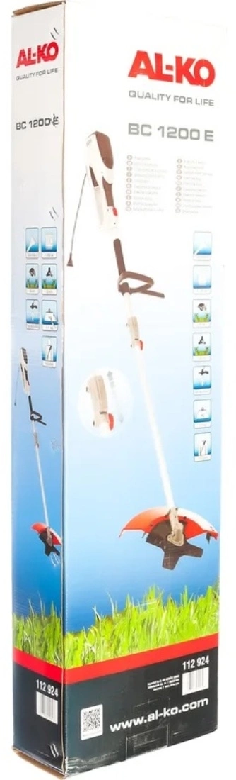 Мощный двигатель – 1200 Вт; Возможность оснащения металлическим ножом или шпулькой с нейлоновой леской; Автоматическая регулировка лески; Ширина прохода 230 мм с ножом и 350 мм с леской; Работает от бытовой электросети 230 В; Дополнительная регулируемая D-образная ручка и плечевой ремень.