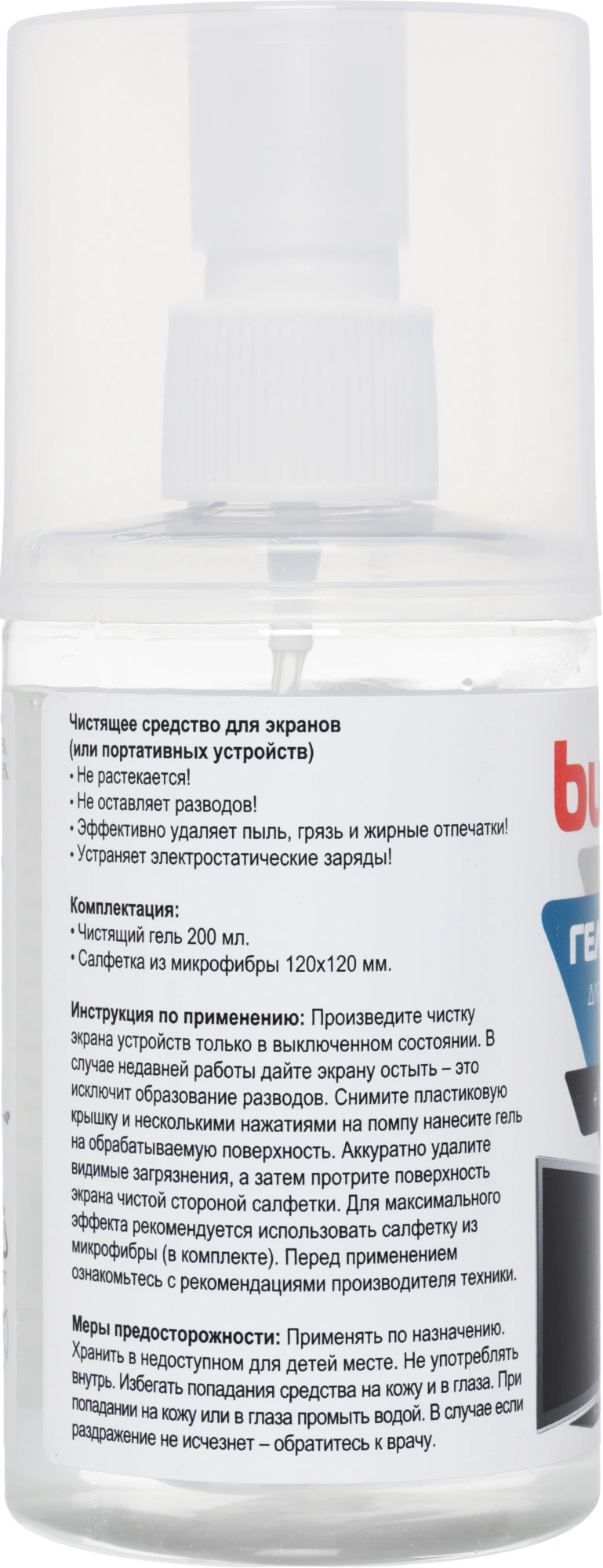 Чистящий набор состоит из геля-очистителя и салфетки из микроволокна. Предназначен для очистки экранов и оптики от грязи, пыли и отпечатков пальцев. Не оставляет разводов, не содержит спирт.