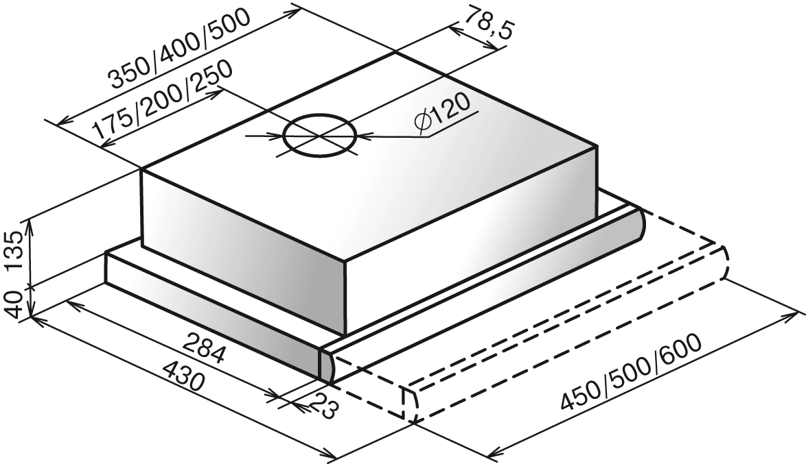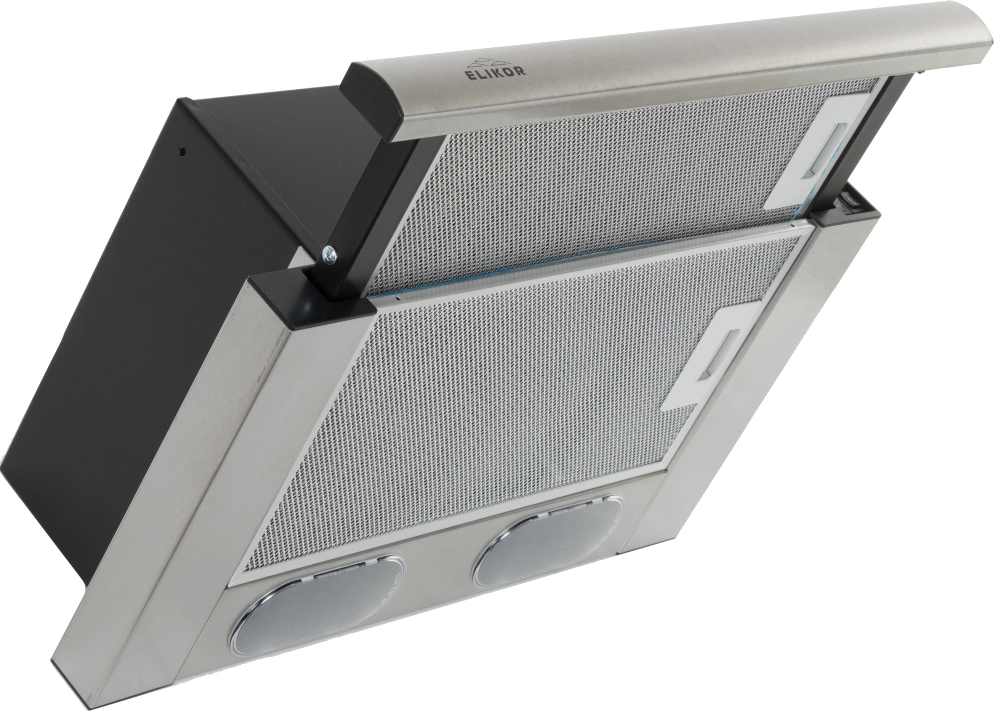 Выдвижная панель вытяжки «ИНТЕГРА» позволяет значительно увеличить зону всасывания над рабочей поверхностью, тем самым, повышая эффективность удаления загрязнённого воздуха.