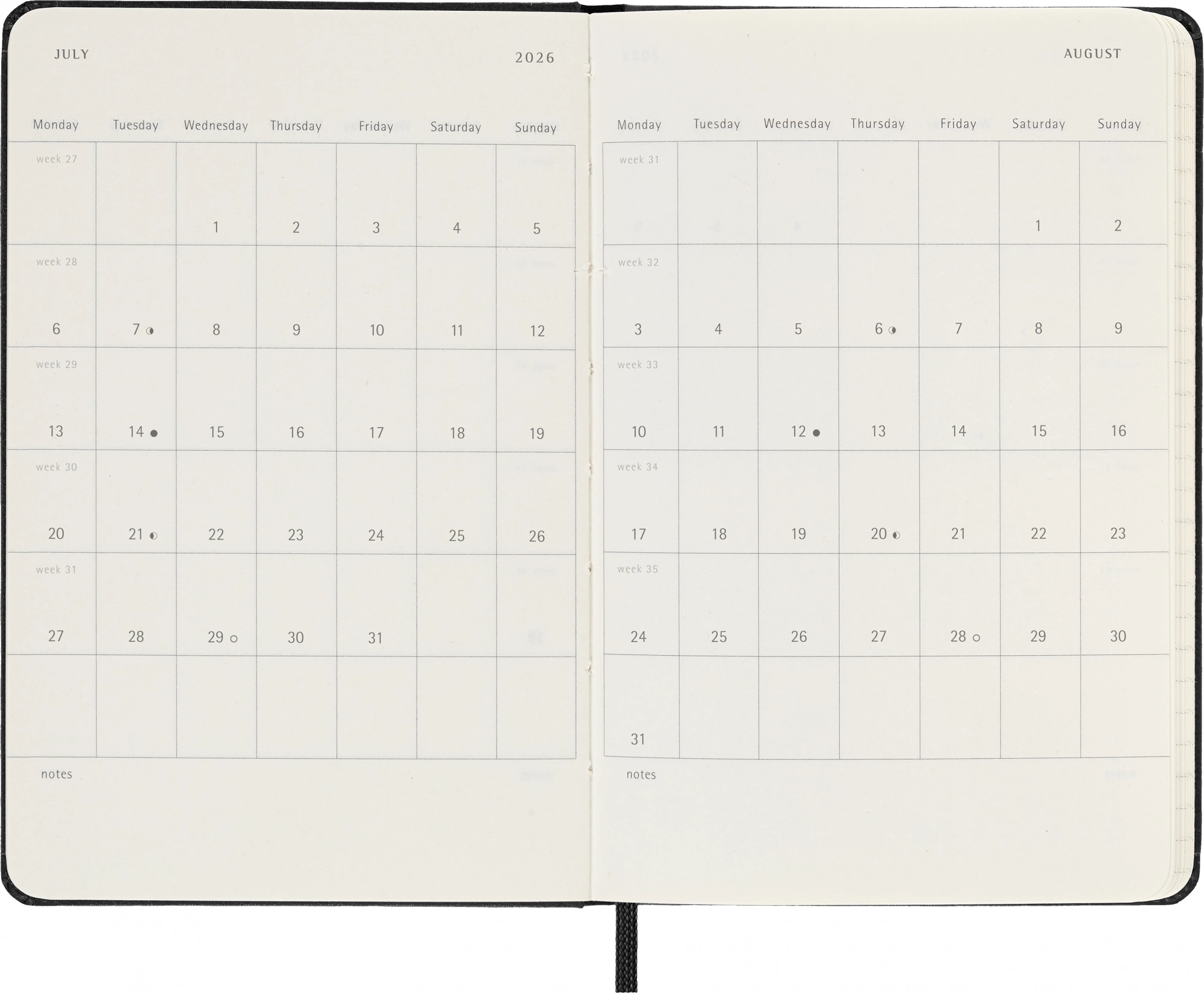 Ежедневник Moleskine датирован с января по декабрь.