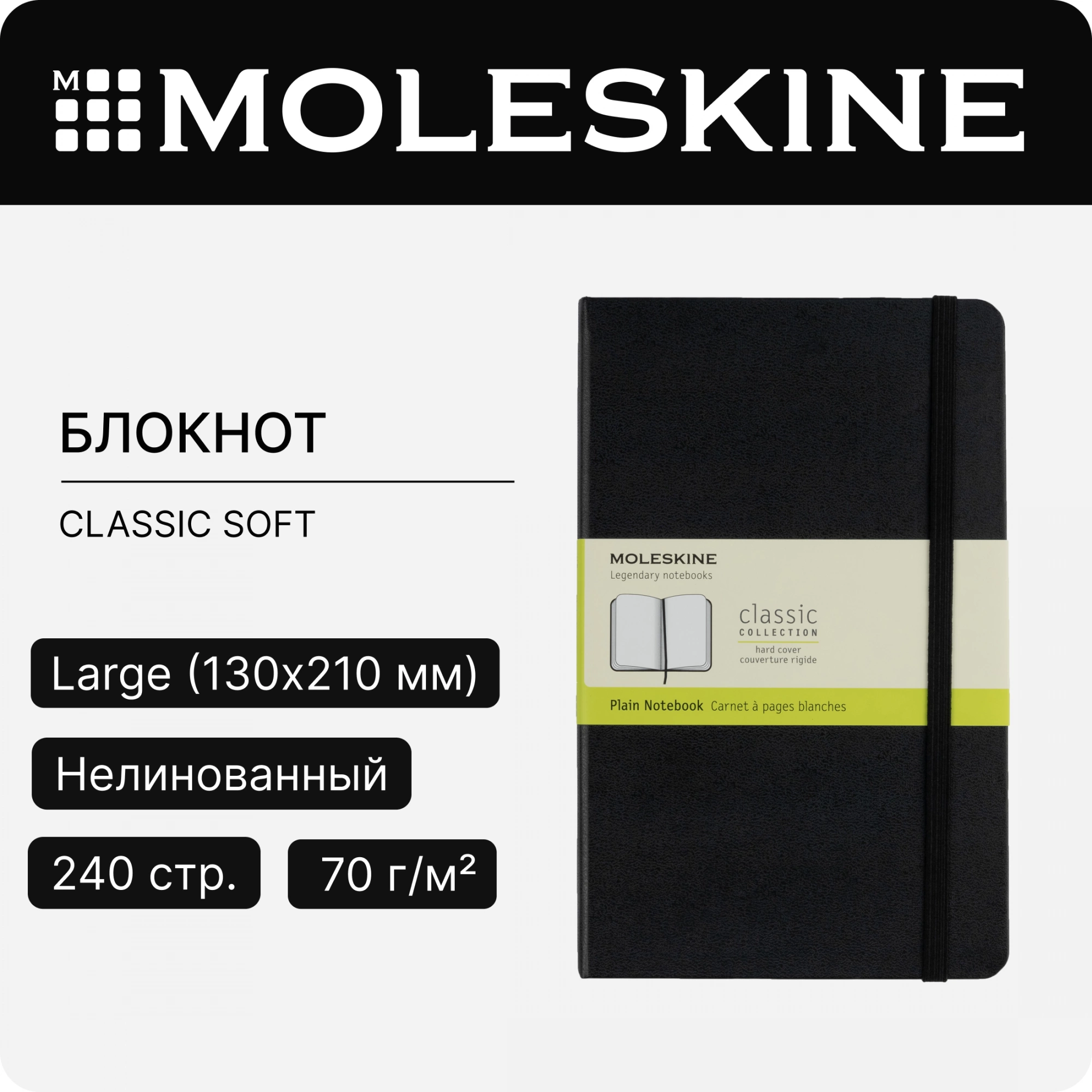 Этот простой, но уже ставший классикой блокнот размера large нелинованный является одним из самых популярных изделий Moleskine. Этот надежный спутник, идеально подходящий для подсчетов, записи мыслей и заметок, выполнен в картонной обложке со скругленными углами, с листами из бескислотной бумаги, закладкой, эластичной застежкой и вместительным внутренним карманом, куда вложена карточка с историей Moleskine.
