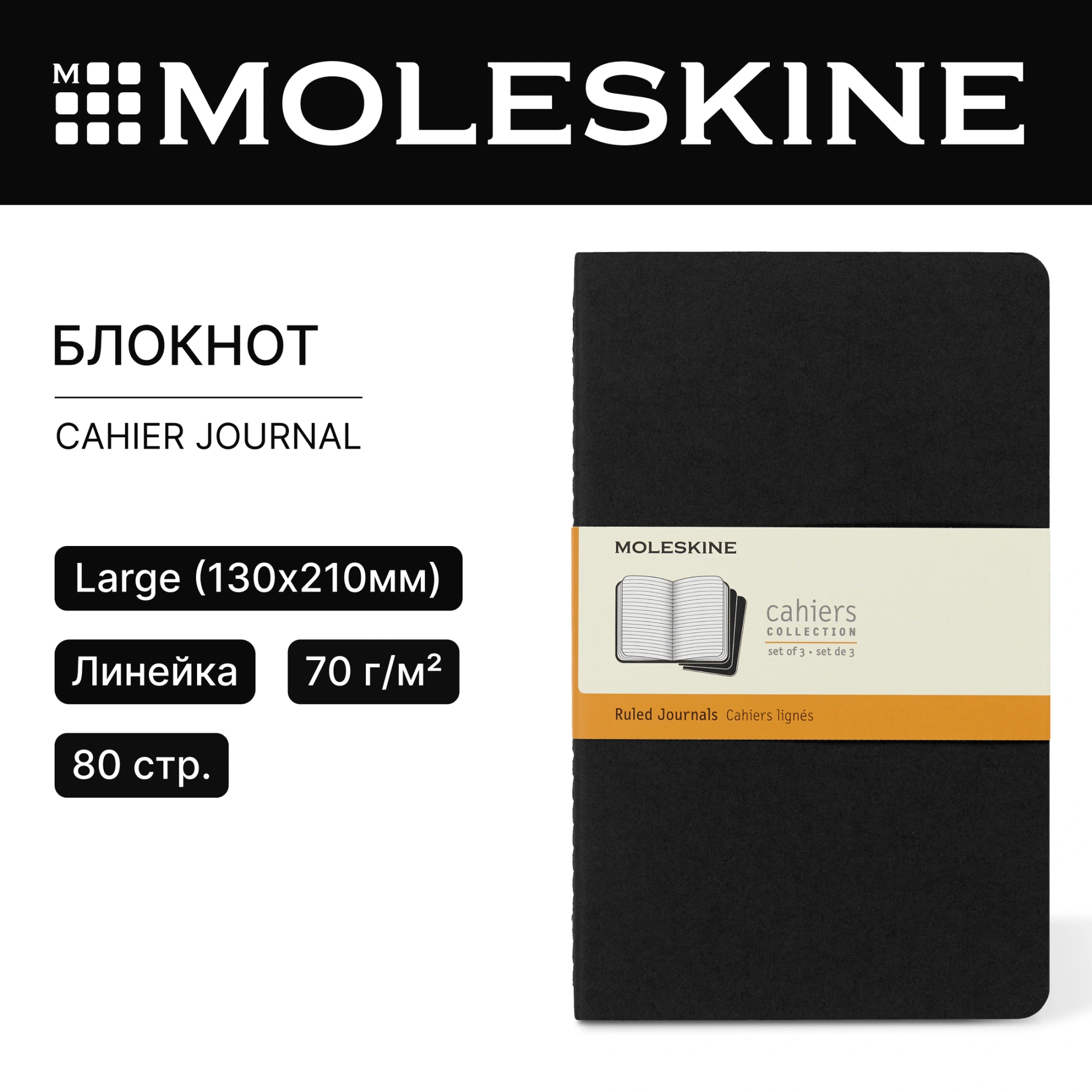 Блокнот Moleskine CAHIER JOURNAL QP316 Large 130х210мм обложка картон 80стр. линейка черный (3шт)