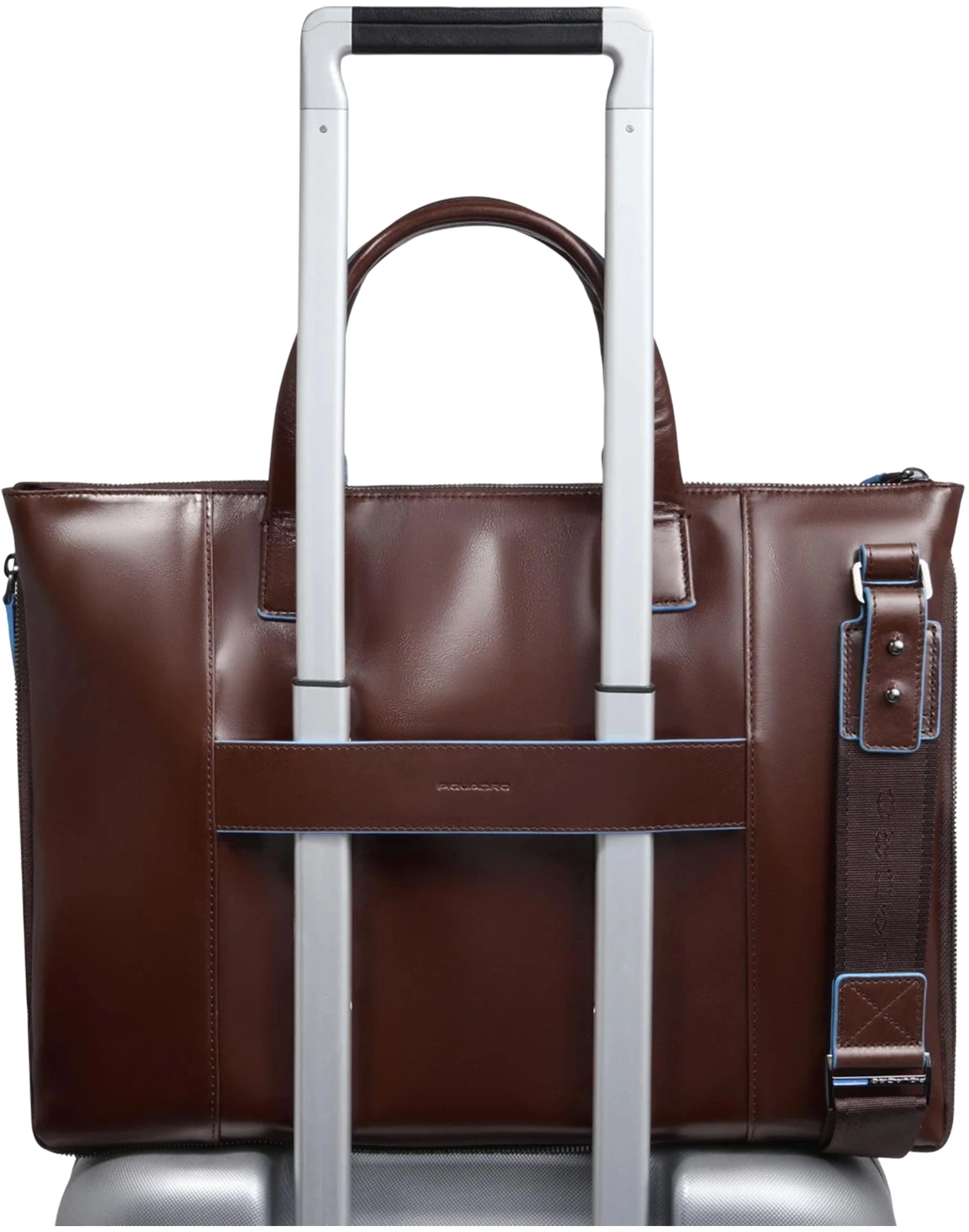 Коллекция Blue Square изготовлена из кожи теленка. Для дубления этой кожи используется традиционный метод, сохраняющий красоту кожи на многие годы. Необработанные края, окрашенные вручную в синий цвет, оживляют деловой характер коллекции и являются узнаваемым отличительным элементом.