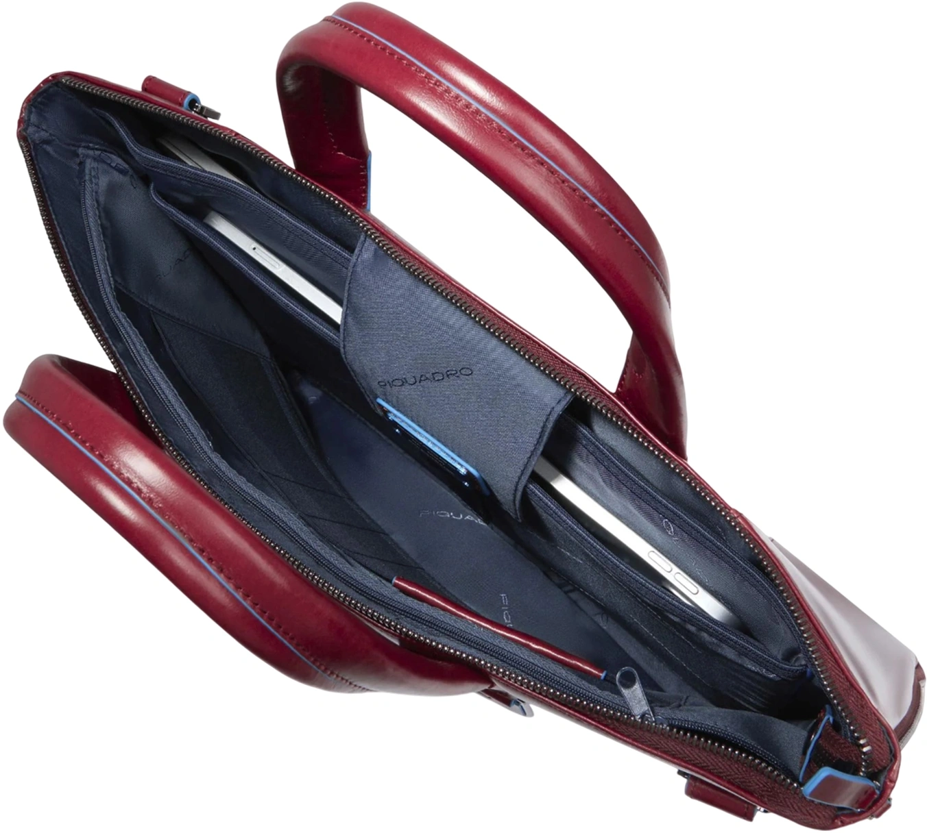 Коллекция Blue Square изготовлена из кожи теленка. Для дубления этой кожи используется традиционный метод, сохраняющий красоту кожи на многие годы. Необработанные края, окрашенные вручную в синий цвет, оживляют деловой характер коллекции и являются узнаваемым отличительным элементом.