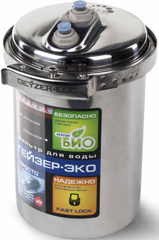 Одноступенчатый фильтр "Гейзер Эко" для очистки воды, разработан для регионов с низким и средним уровнем минерализации воды. В фильтре используется композиционный картридж Арагон 3 ЭКО, состоящий из предфильтра, материала Арагон и высококачественного кокосового угля.