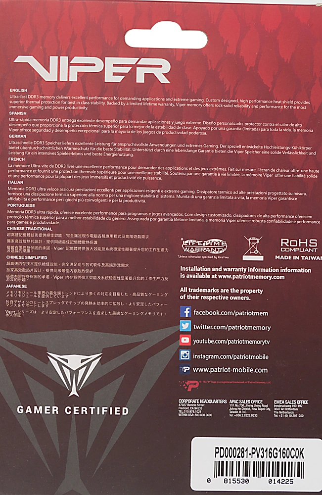 Viper 3 RTL PC3-12800 CL10 DIMM 240-pin 1.5В dual...