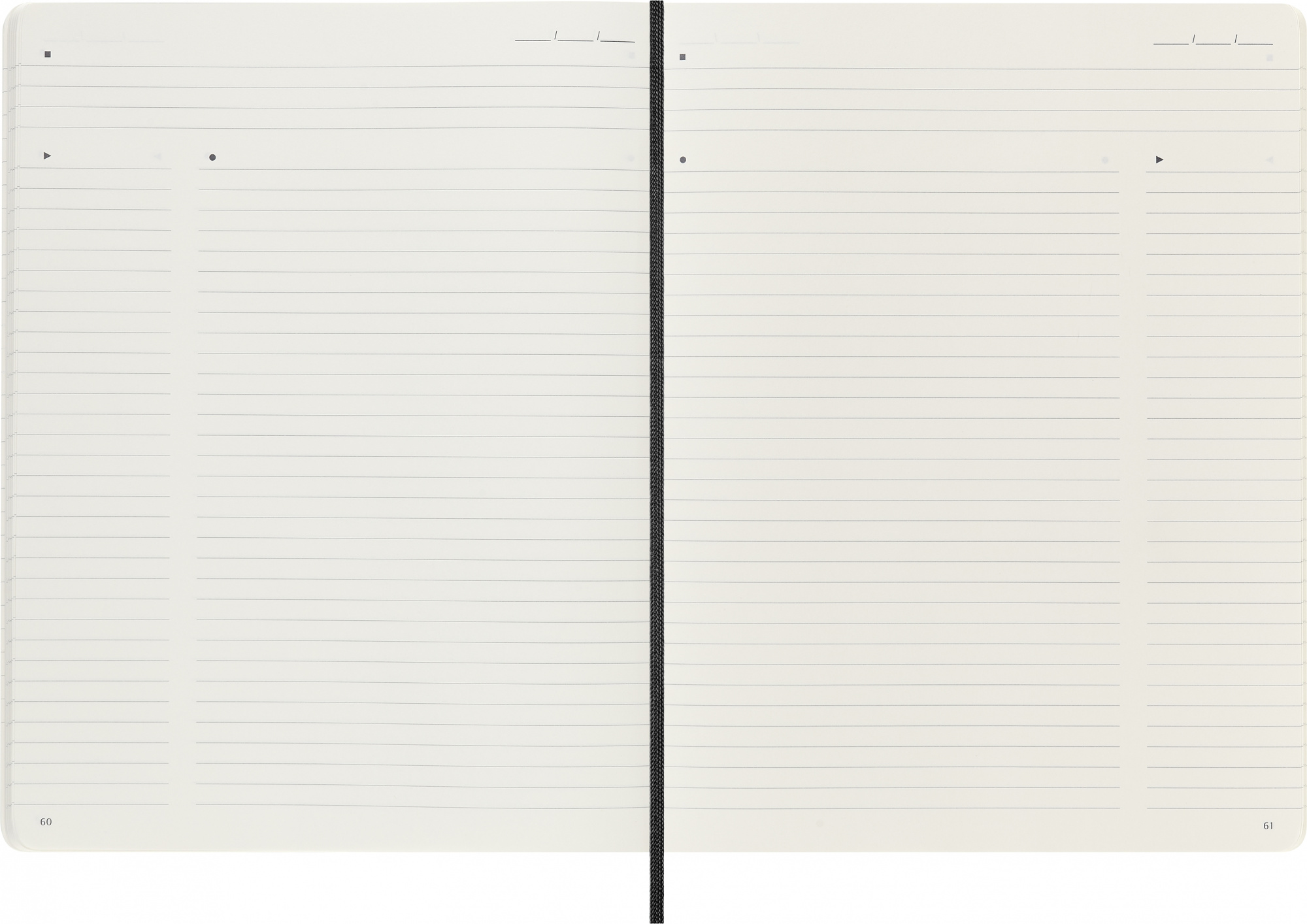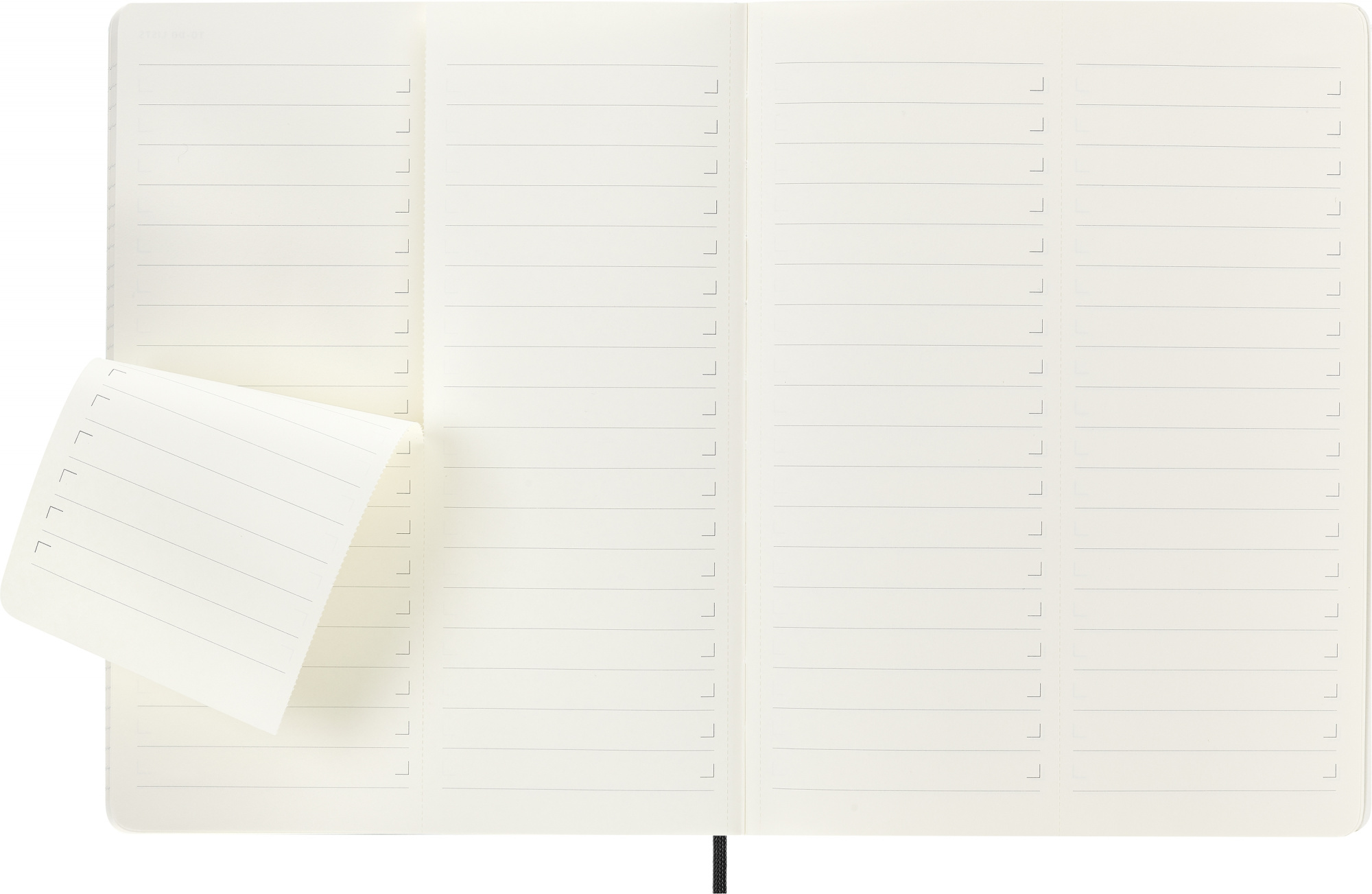 Оставайтесь на высоте в вашей работе, где бы она вас ни застала. Эта универсальная записная книжка большого формата с мягкой обложкой имеет несколько типов оформления страниц для ключевых задач и целей, которые помогут вам подготовиться к рабочему дню в офисе, деловой встрече или креативному мозговому штурму. С удовольствием оторвите выполненный список намеченных дел, легко находите свои заметки по оглавлению и номерам страниц, храните все дорожные чеки, визитки и раздаточный материал в двойном расширяющемся заднем кармане.