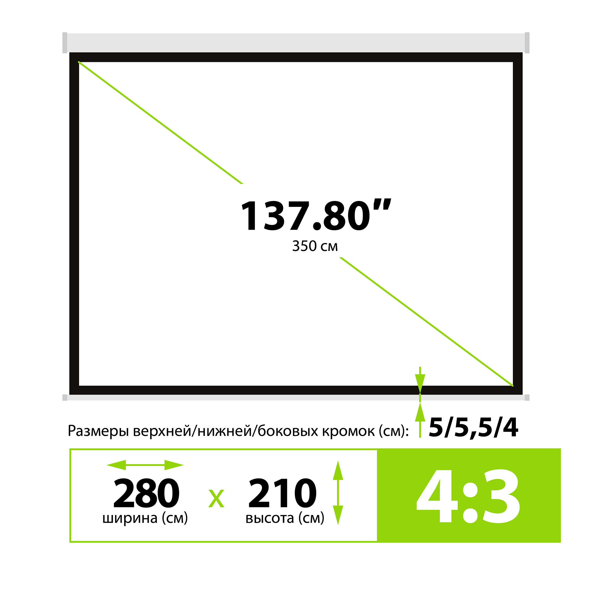 4:3 настенно-потолочный рулонный белый (моторизова...