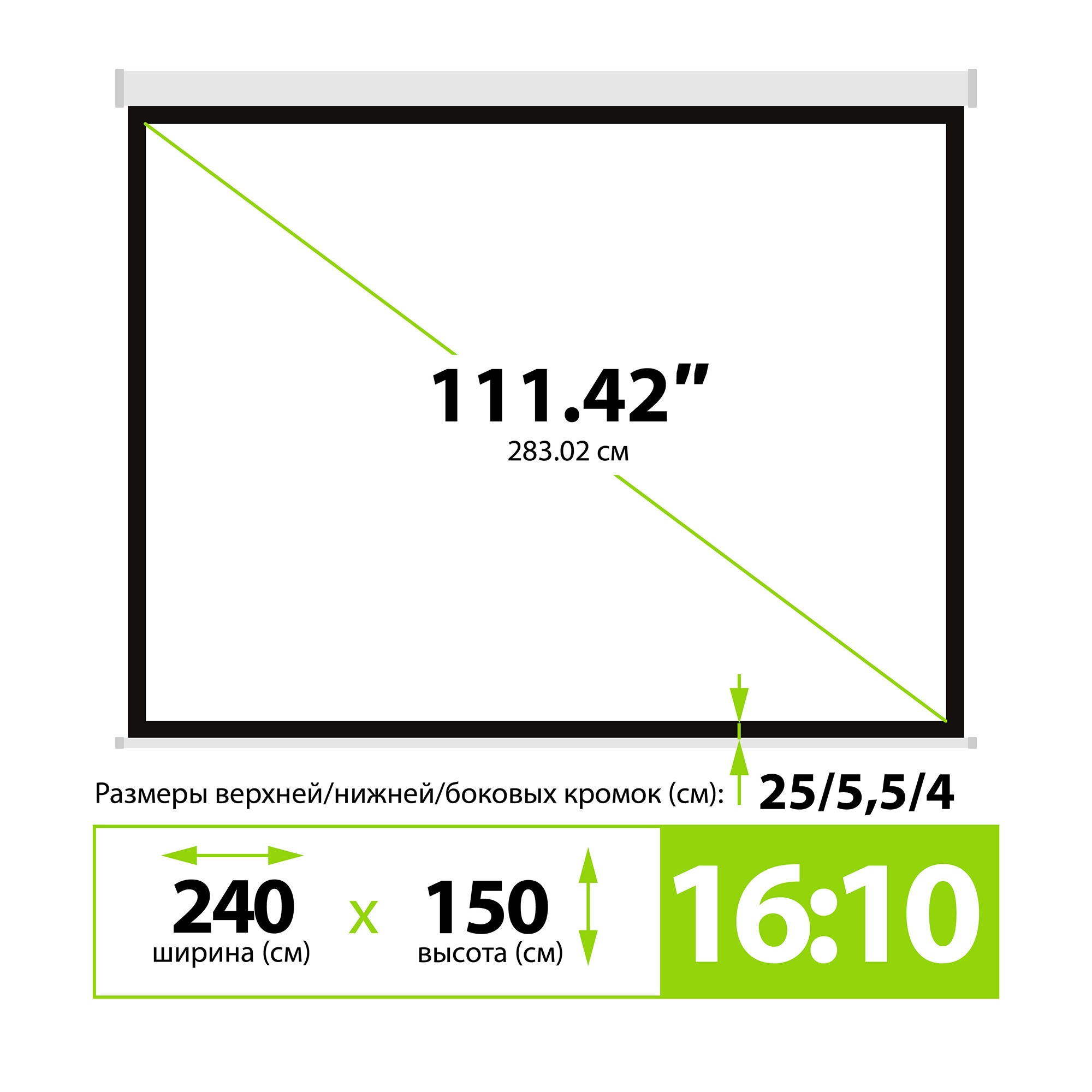 16:10 настенно-потолочный рулонный белый (моторизо...