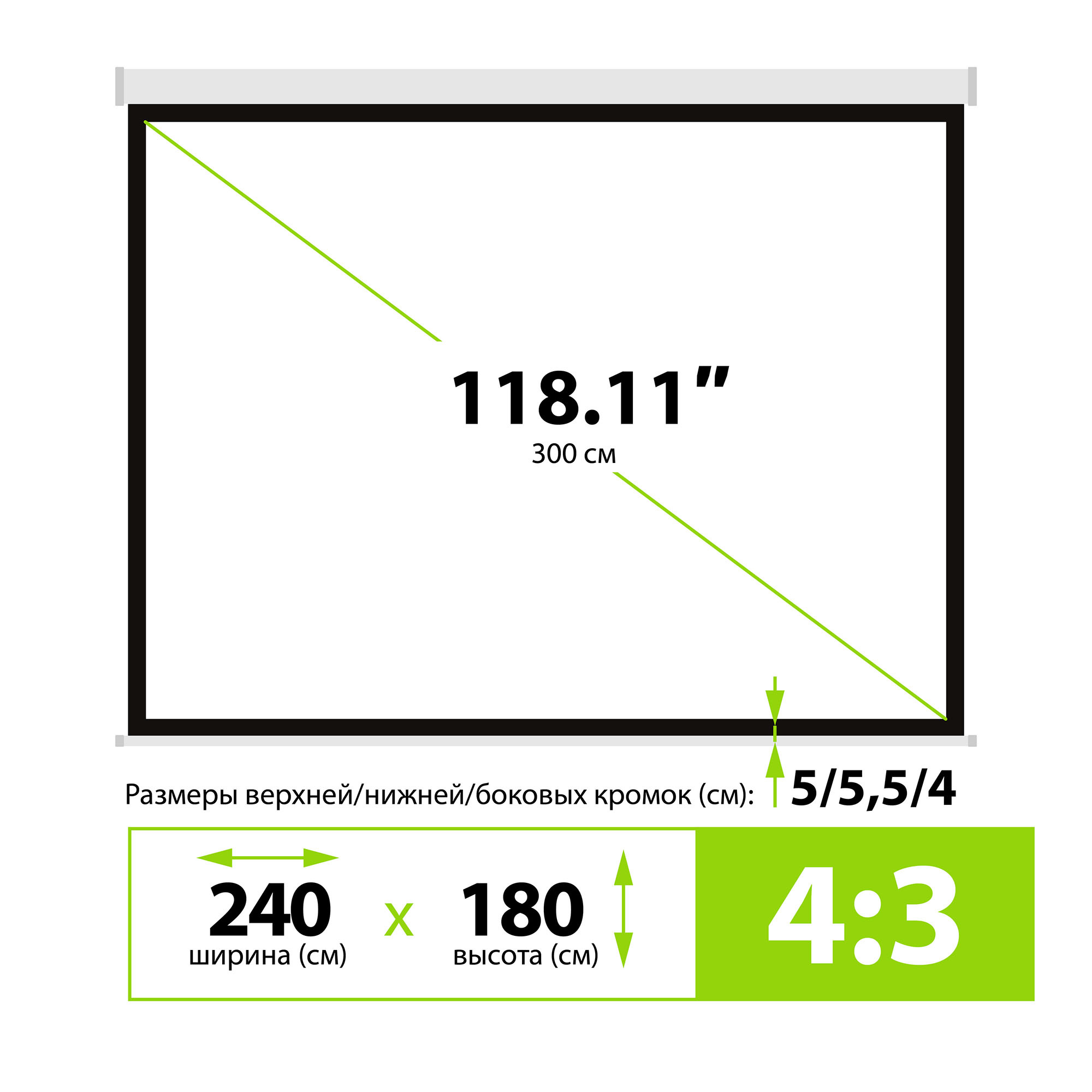 4:3 настенно-потолочный рулонный белый (моторизова...