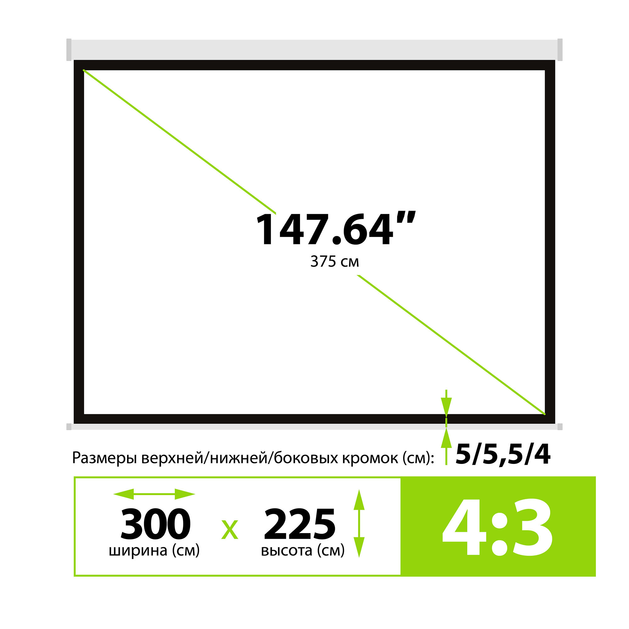 4:3 настенно-потолочный рулонный белый (моторизова...