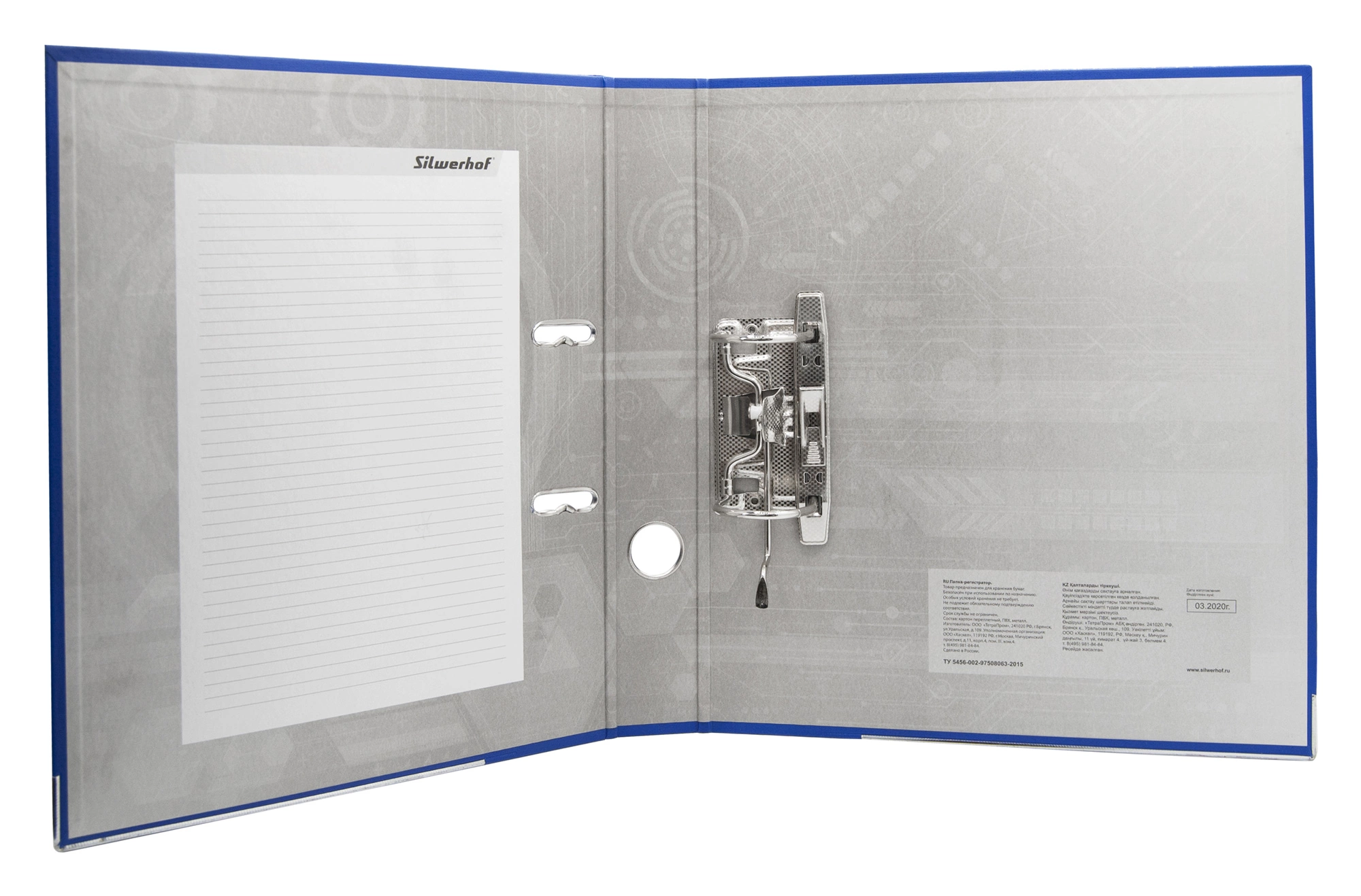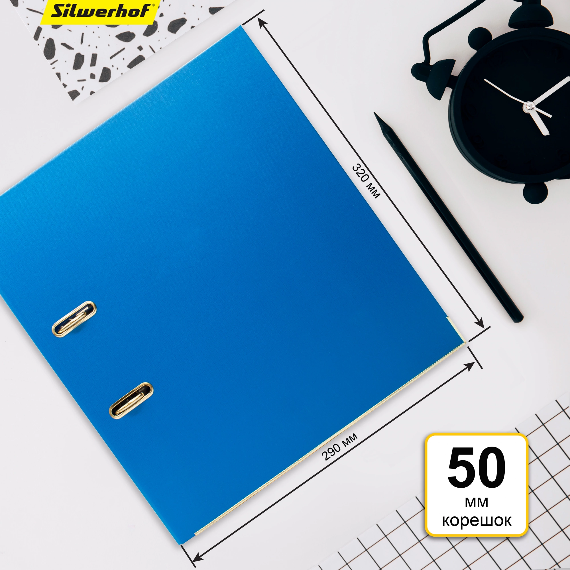 Папка-регистратор Silwerhof 355020-02 A4 50мм ПВХ/бумага синий мет.окант. сборная смен.карм. на кор.