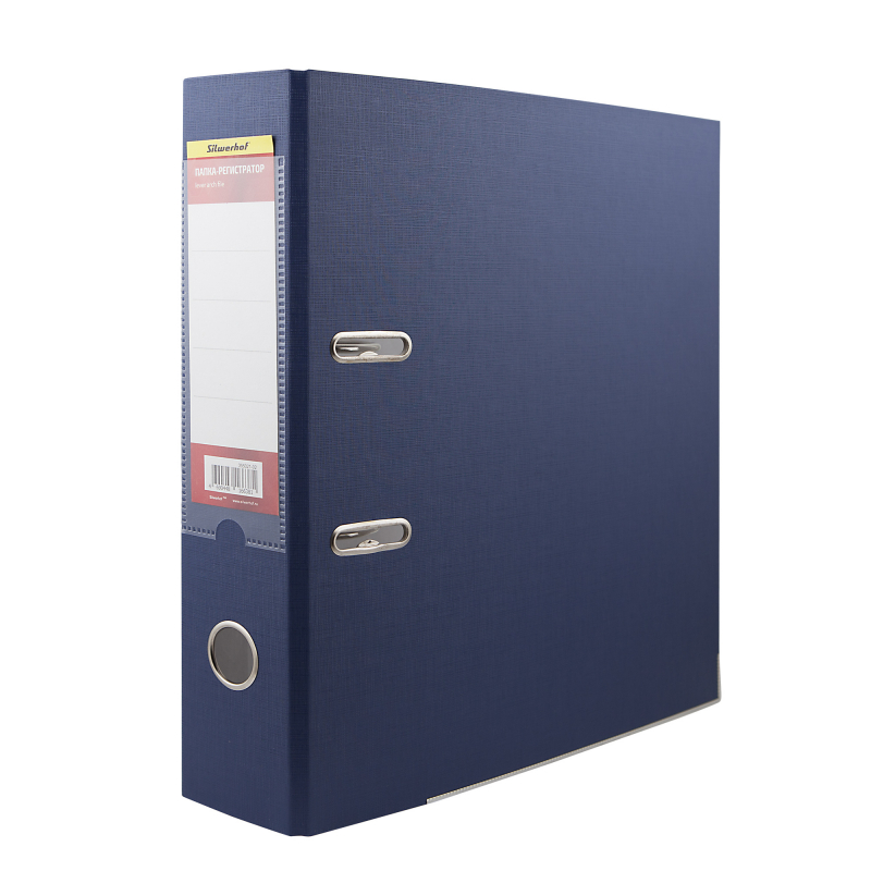 Папка-регистратор Silwerhof 355021-02 A4 75мм ПВХ/бумага синий мет.окант. сборная смен.карм. на кор.