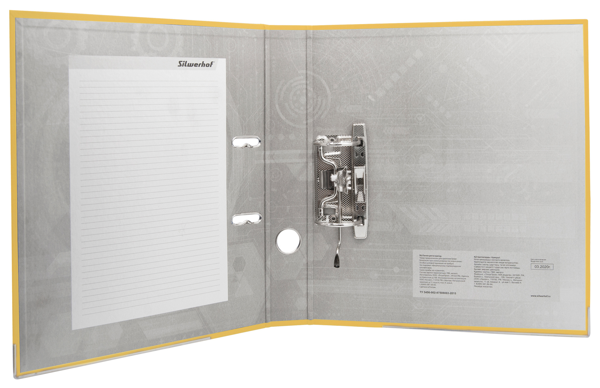 Папка-регистратор Silwerhof 355021-05 A4 75мм ПВХ/бумага желтый мет.окант. сборная смен.карм. на кор.