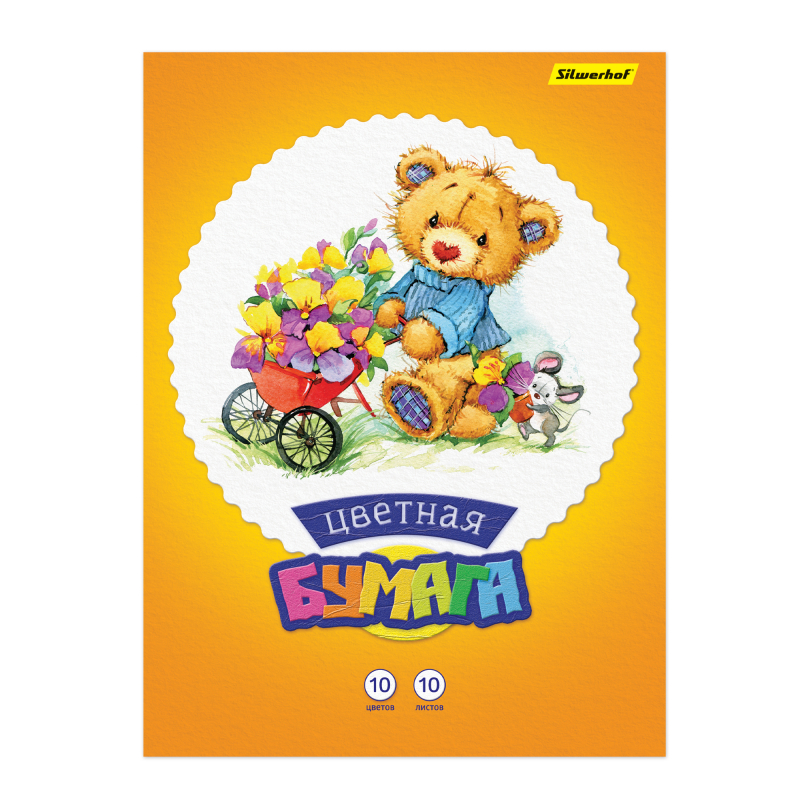 Бумага цветная Silwerhof 917153-24 ассорти одност. 10л. 10цв. A4 Мишки 50г/м2 2диз. обл.мел.бумага скрепка