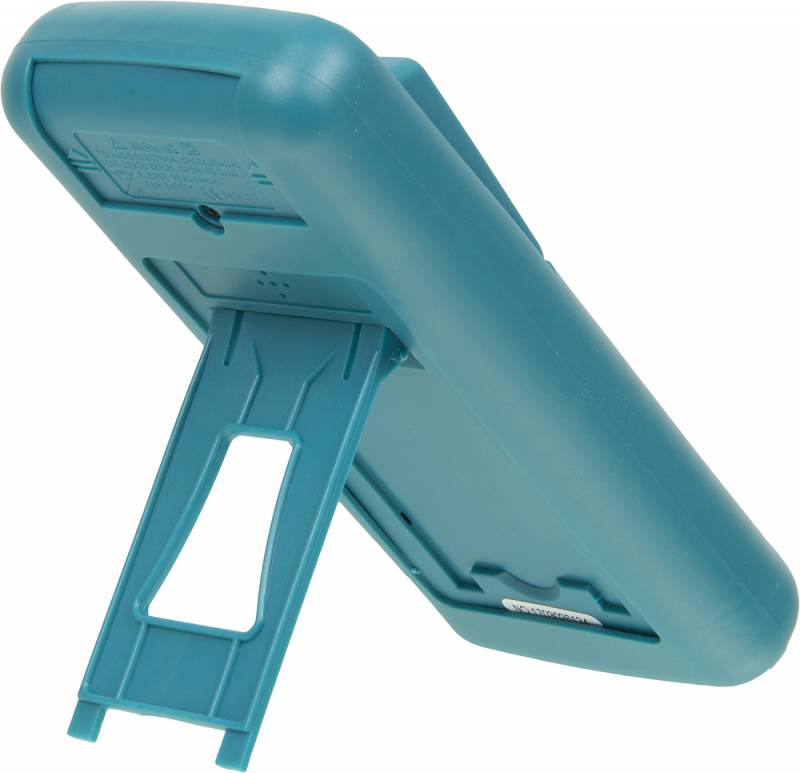 Мультиметр цифровой, щуп с красным кабелем, щуп с черным кабелем, батарея 9V (крона), защитный резиновый чехол, коробка.