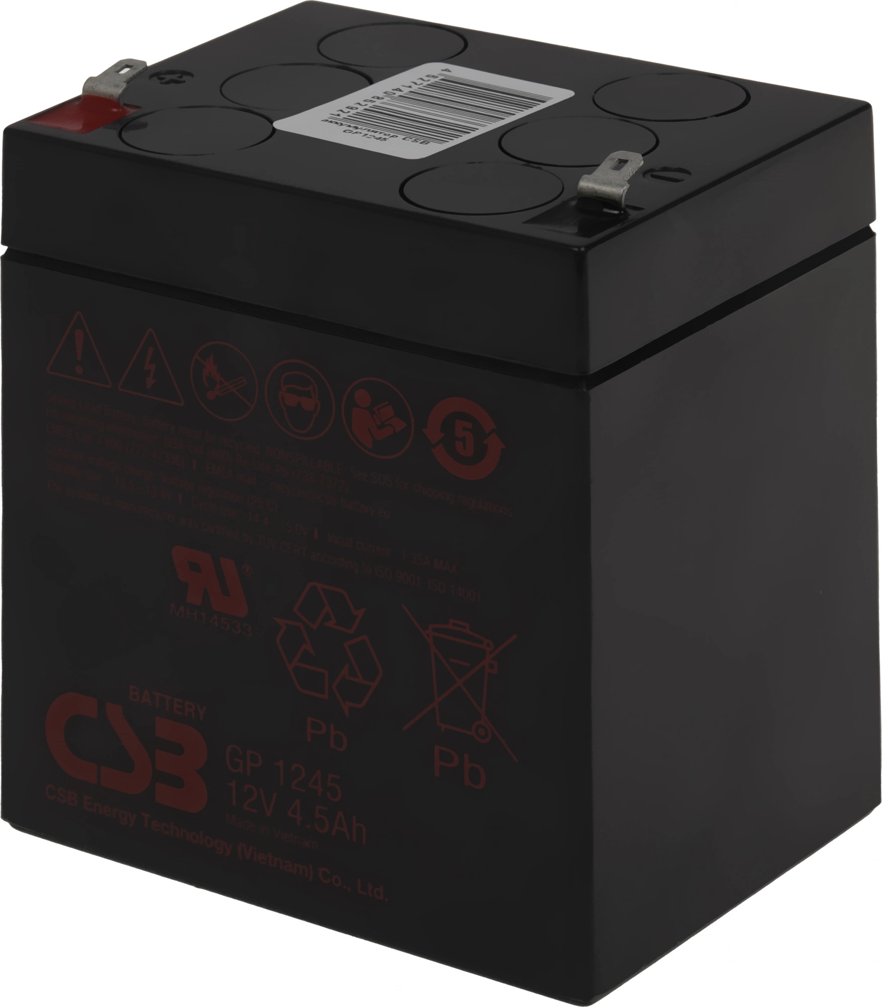 Аккумулятор CSB GP 1245 общего применения со сроком службы 5 лет в буферном режиме или более 260 циклов заряда-разряда в циклическом режиме при 100% разряде.