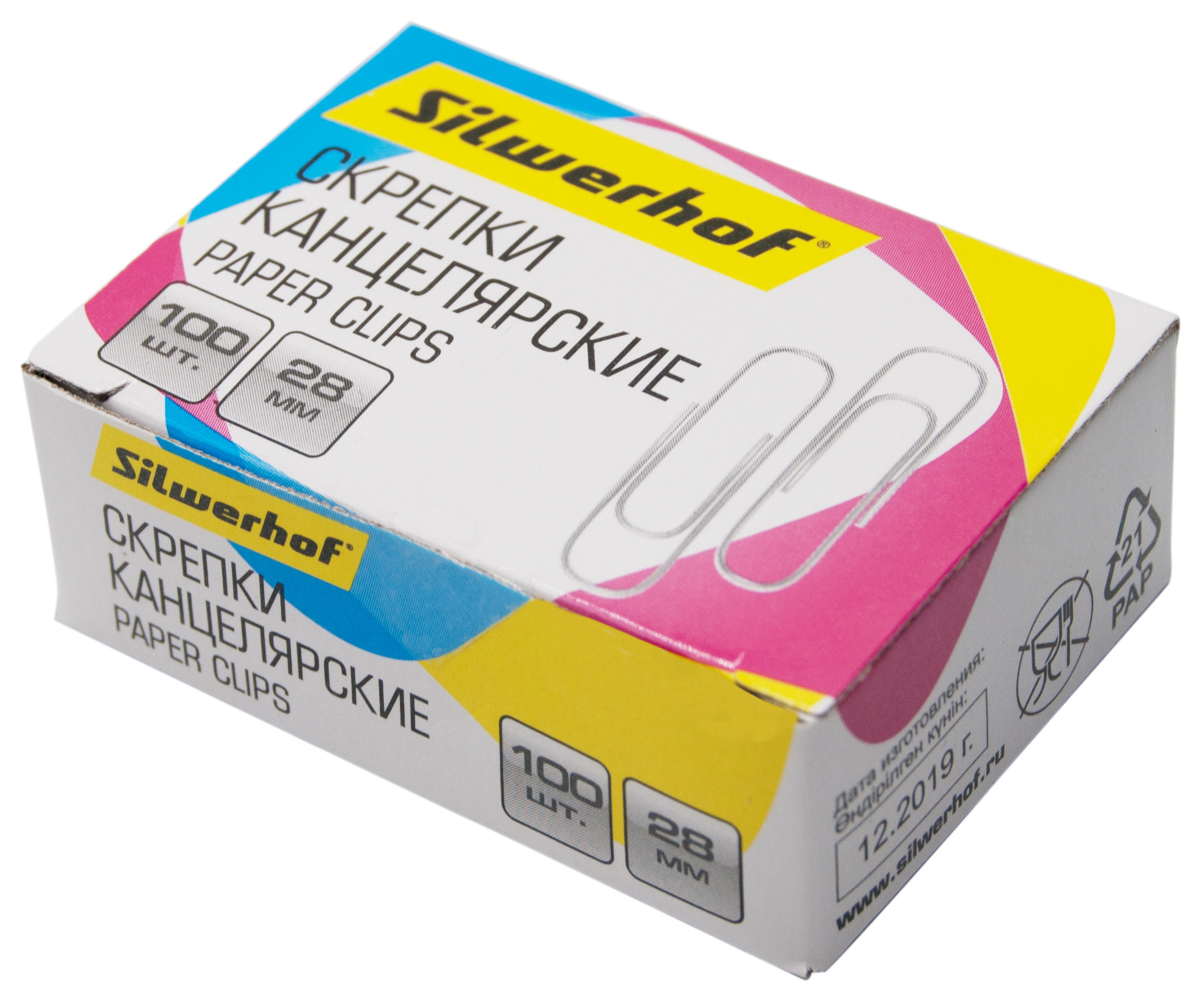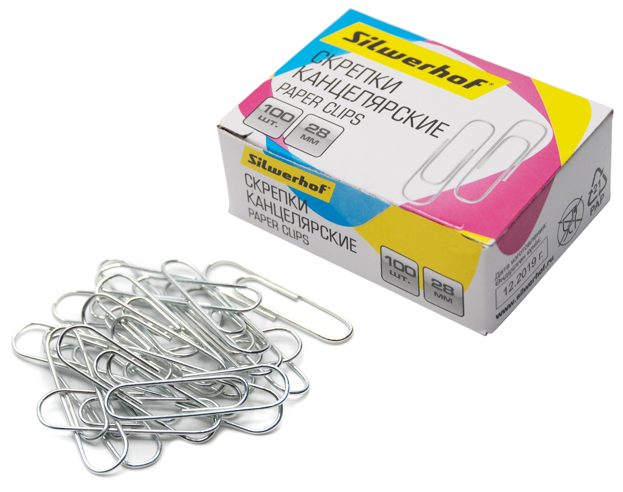 Скрепки Silwerhof 491029 металл оцинкованные 28мм (упак.:100шт) картонная коробка