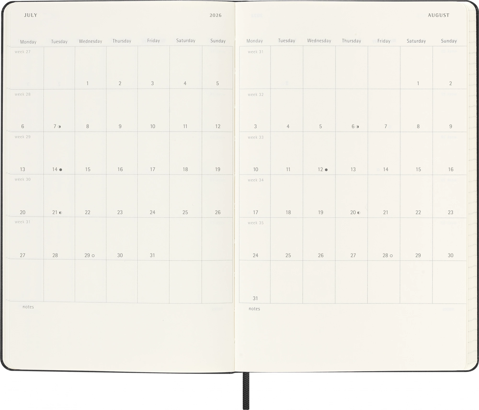 Дневник/планировщик Moleskine датирован с июля по декабрь.