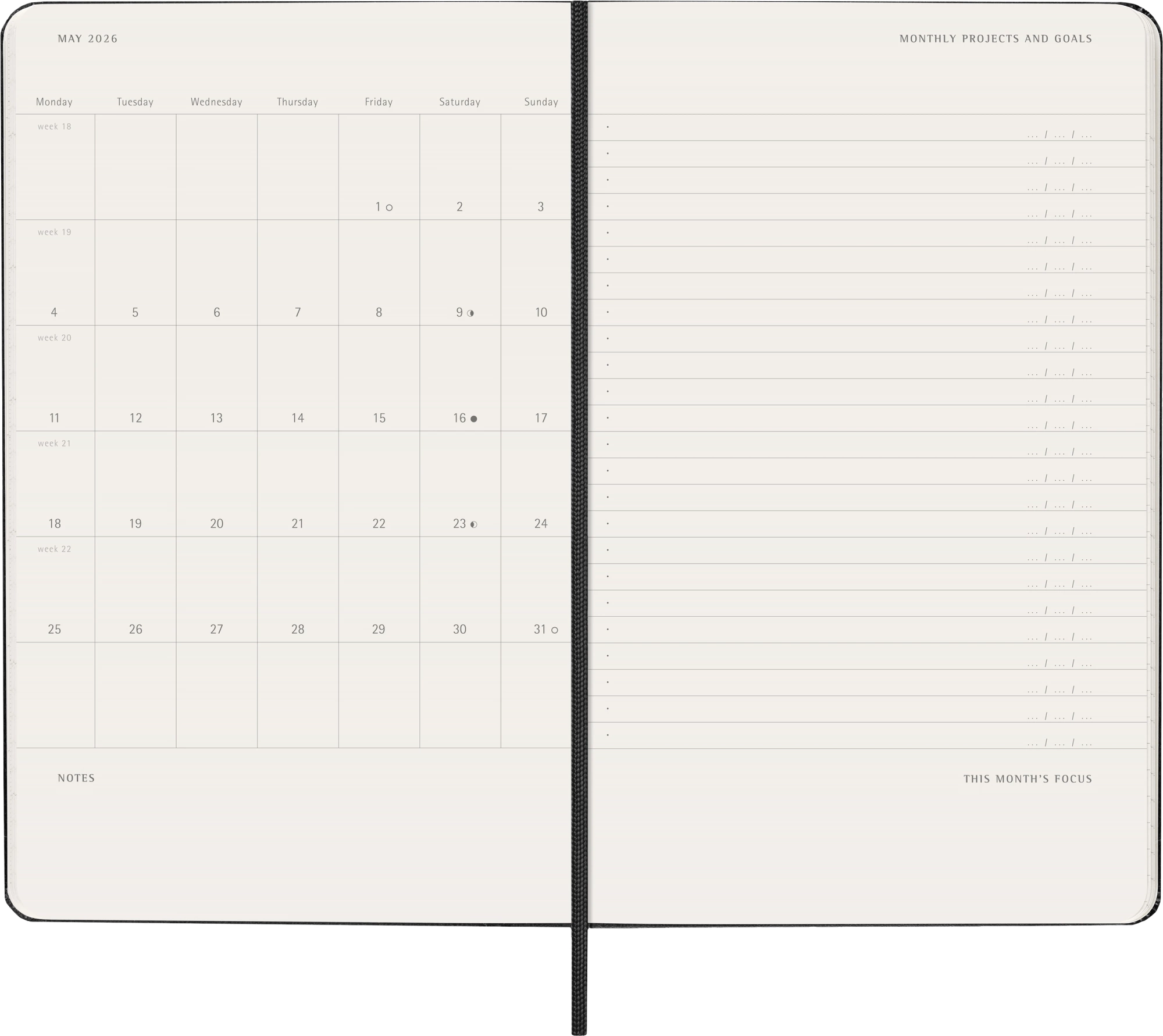 - скругленные углы, эластичная застежка-резинка и лента-закладка в тон