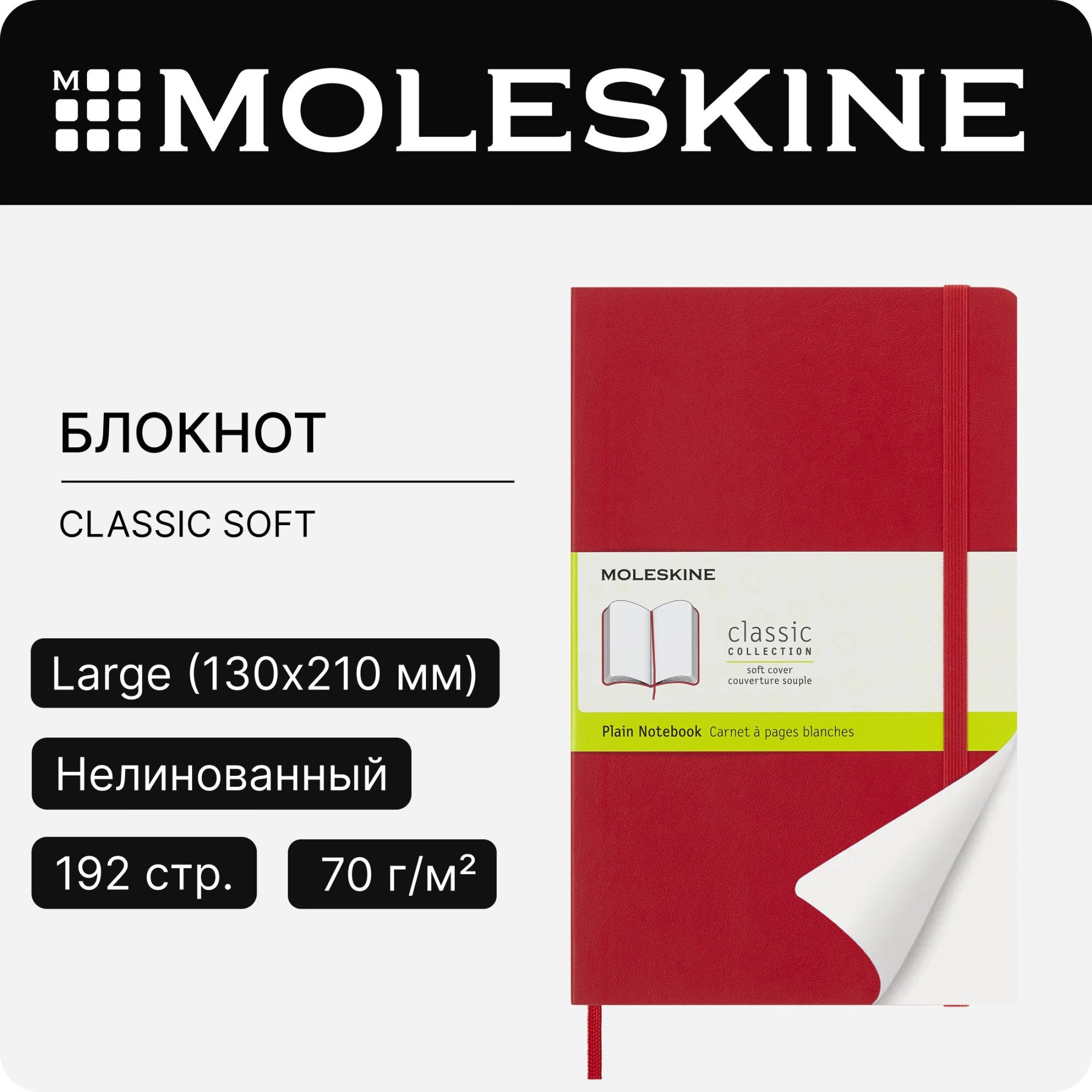 Блокнот Moleskine CLASSIC SOFT QP618F2 Large 130х210мм 192стр. нелинованный мягкая обложка красный