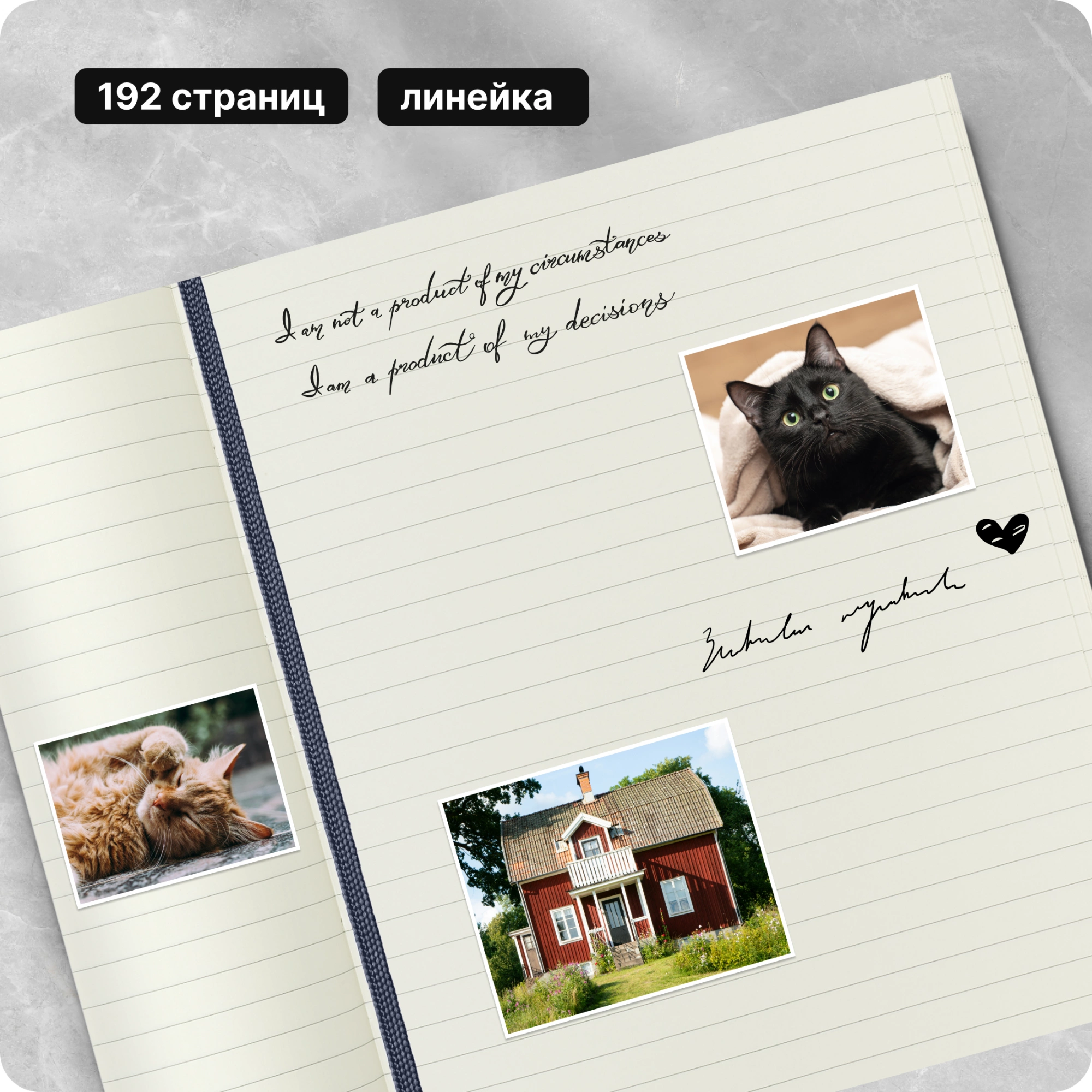 Блокнот размера large в мягкой, но прочной обложке приспосабливается к движениям тела и легко помещается в карман. Он станет для тебя надежным спутником в путешествии и идеально подойдет для записи мыслей и заметок.