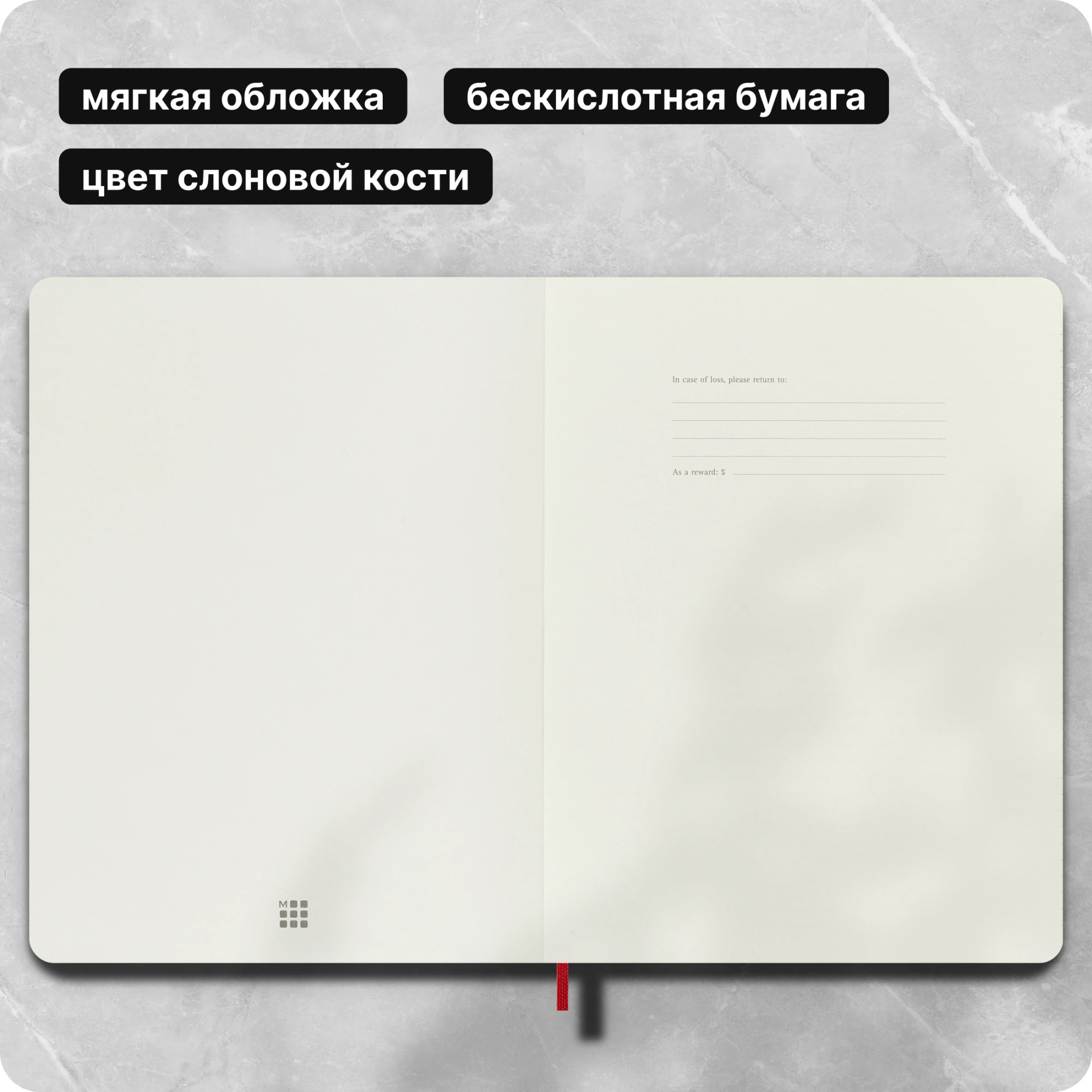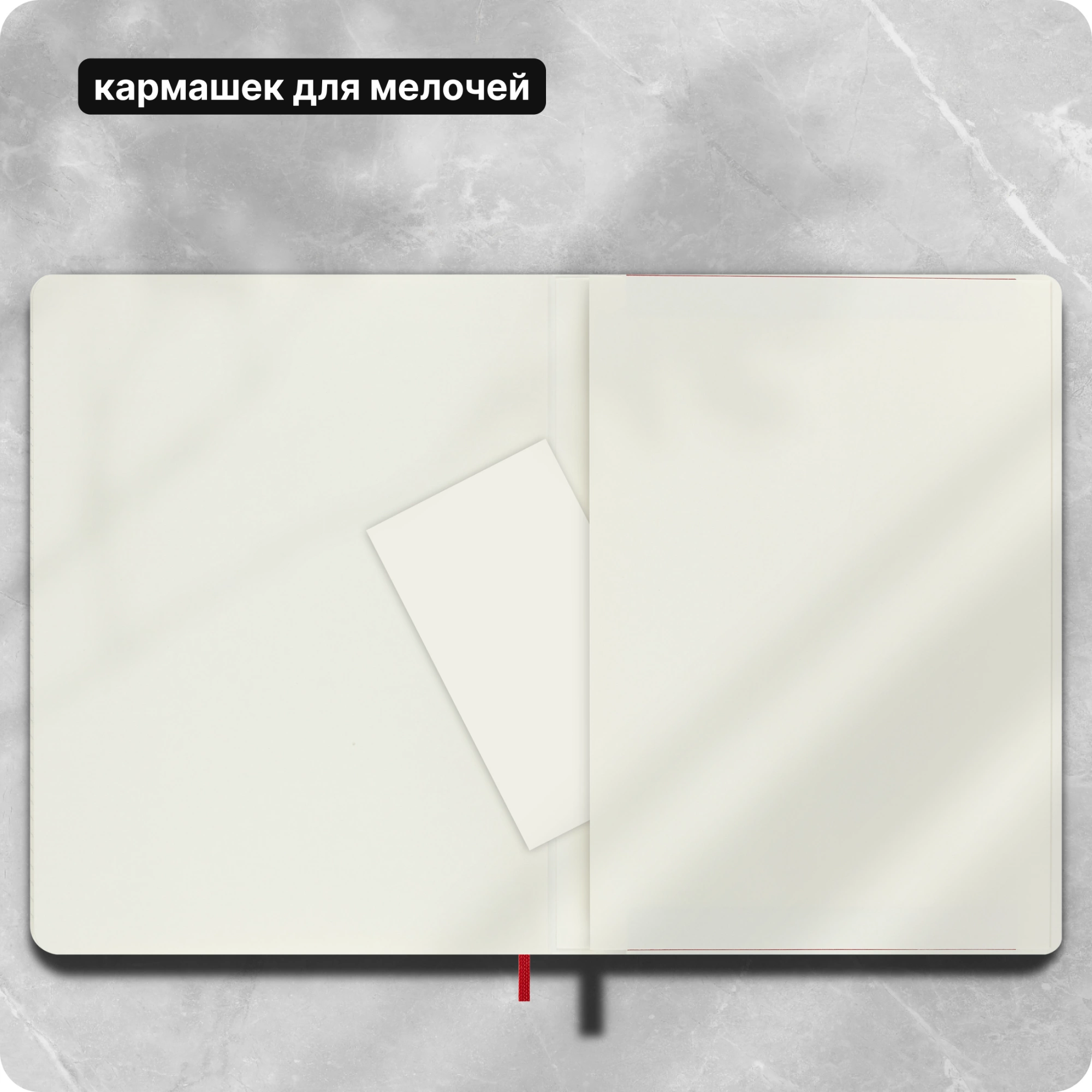 Блокнот размера extra large в мягкой, но прочной обложке приспосабливается к движениям тела и легко помещается в карман. Он станет для тебя надежным спутником в путешествии и идеально подойдет для записи мыслей и заметок.