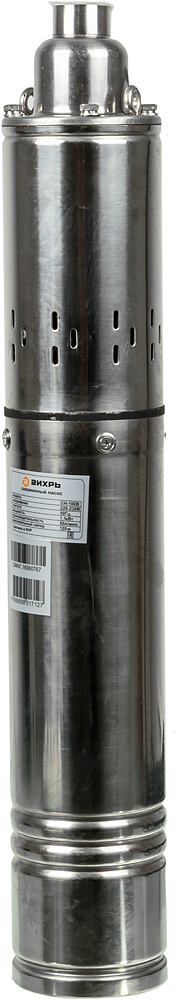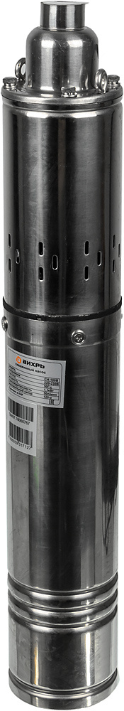 220В/50Гц. Степень защиты IPХ8. Диаметр 102 мм, диаметр выходного отверстия - 1 дюйм. Материал насосной части - хромированная сталь, материал корпуса насоса - нержавеющая сталь.