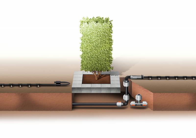 L-образный соединитель с наружной резьбой 25 мм x 1/2", входящий в систему дождевания GARDENA Sprinklersystem, используется для подсоединения выдвижных дождевателей S 80 (арт. 1569-26) и выдвижных турбодождевателей T 100 и T 200 (арт. 8201-29 и 8203-29) в конце подающей линии.