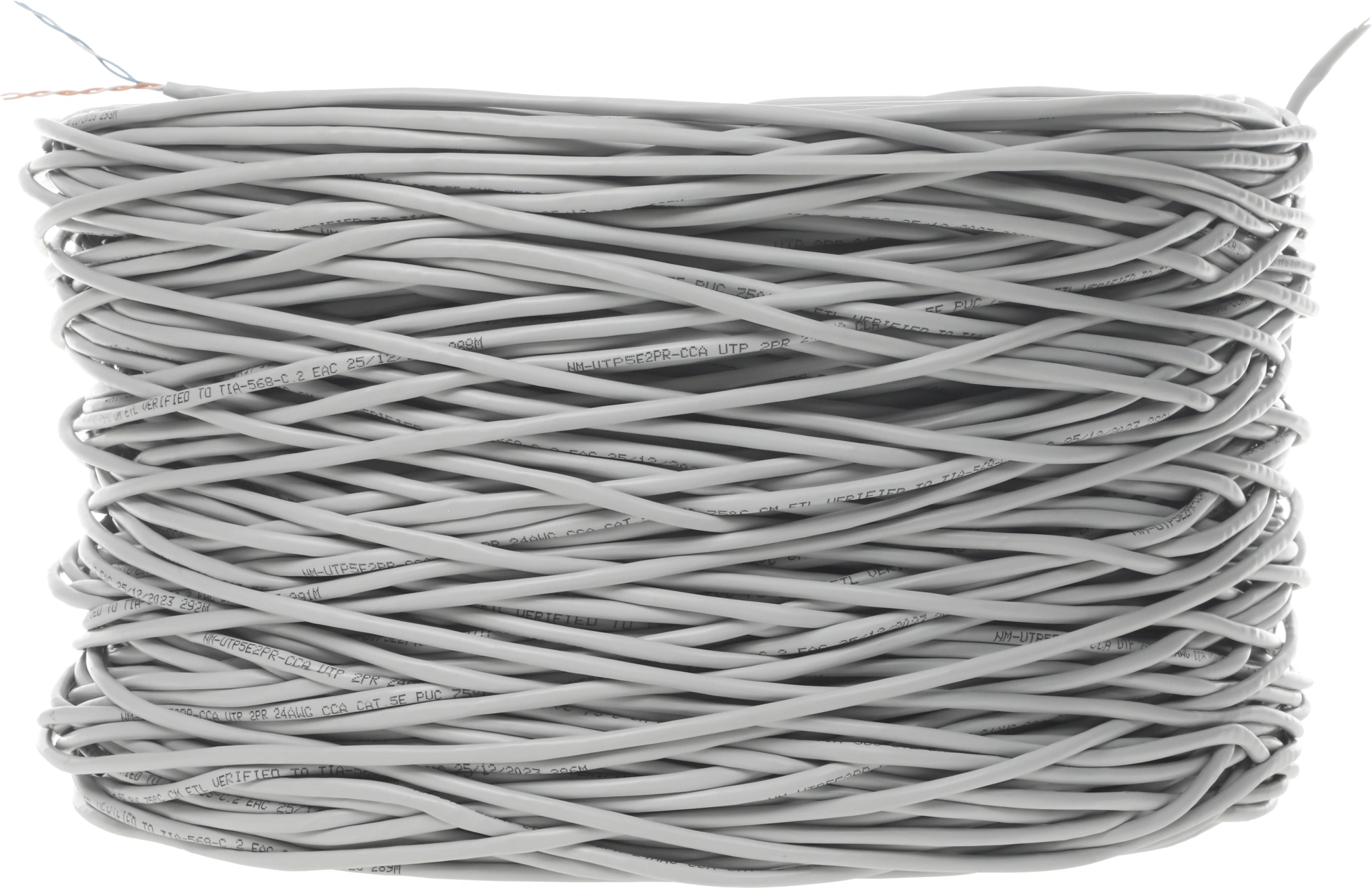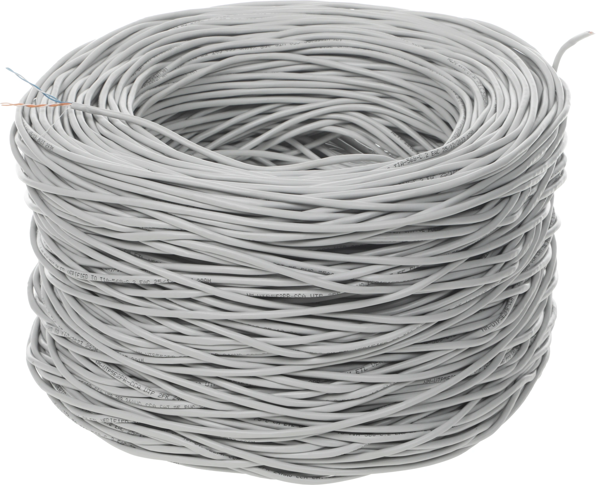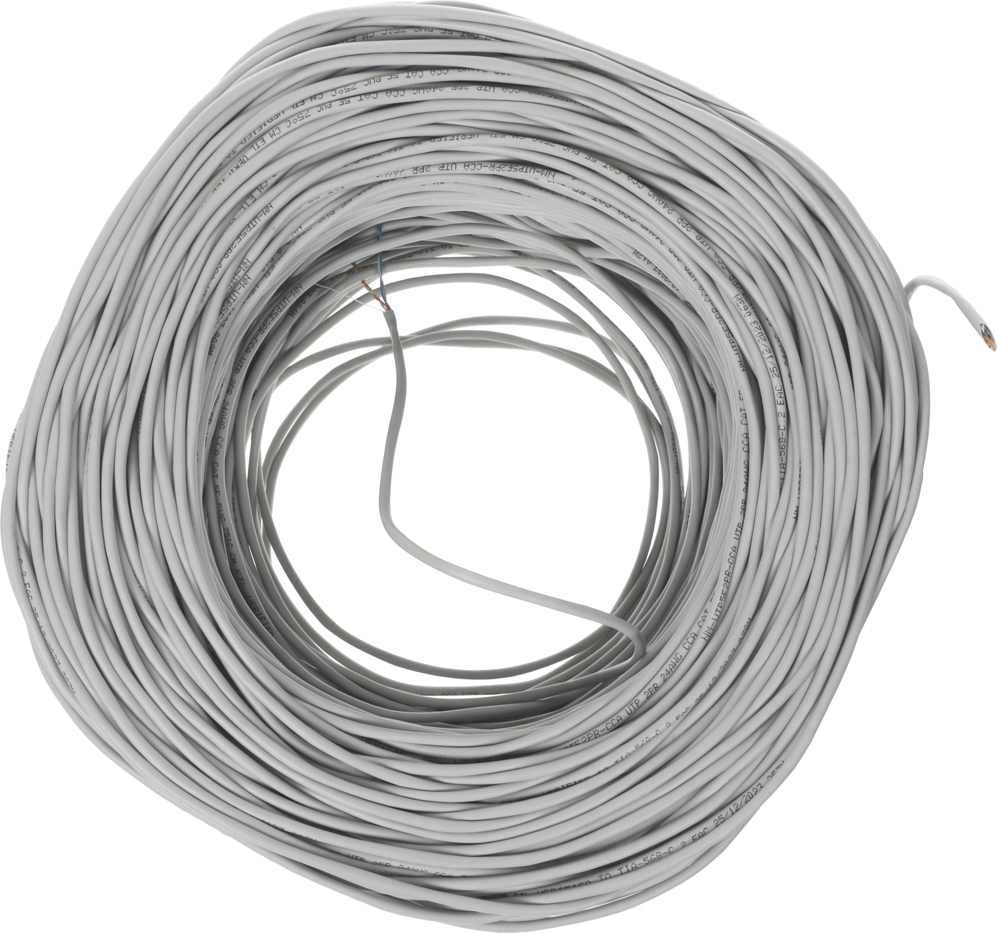 Кабель информационный Lanmaster NM-UTP5E2PR-CCA кат.5E UTP 2 пары 24AWG PVC внутренний 305м серый