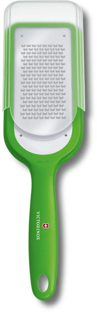Мелкая тёрка идеально подходит для измельчения шоколада, цитрусовых и сыра. Противоскользящая рукоять с дополнительными выемками повышает удобство использования тёрки. Модель имеет защиту режущего элемента, что обеспечивает её безопасное хранение. Пригодна для использования в посудомоечной машине.