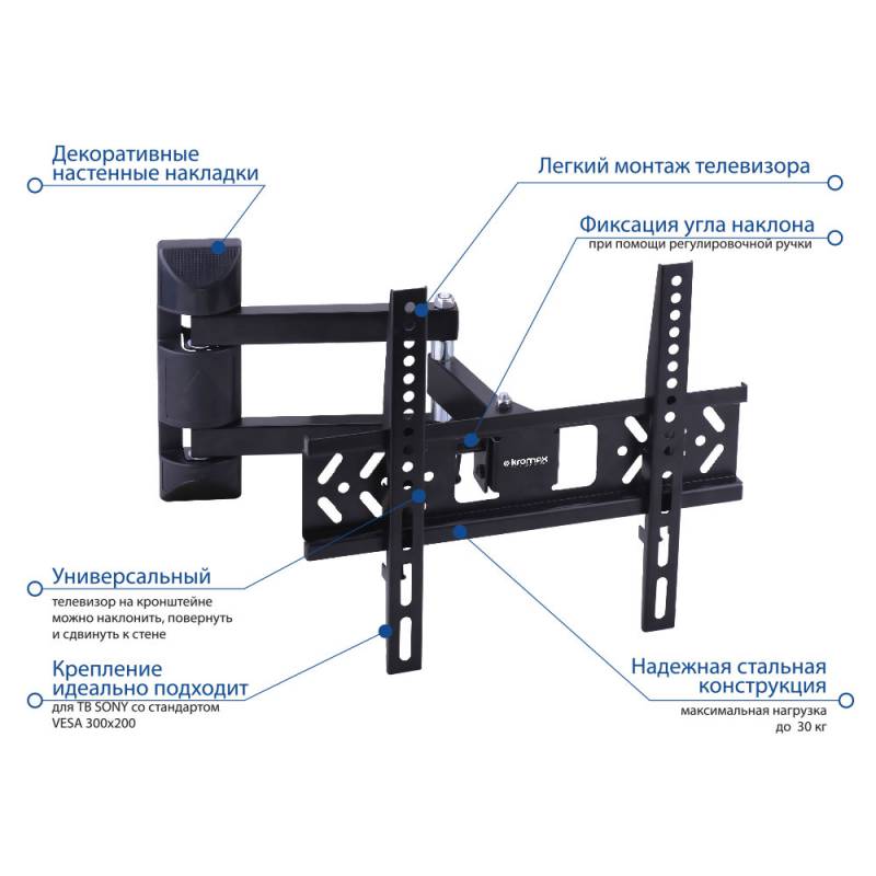 черный 22"-55" макс.30кг настенный поворотно-выдви...