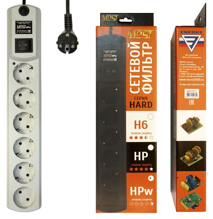 2м (6 розеток) белый (коробка)