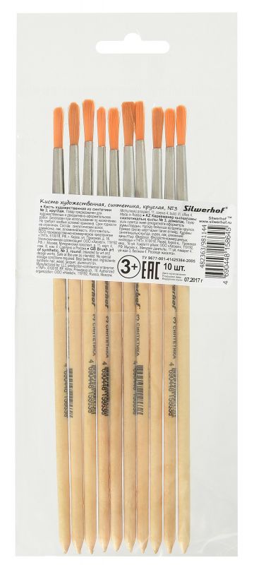 Кисть Silwerhof 981144 худож. синтетика круг. №3 дерев.лакир.ручка