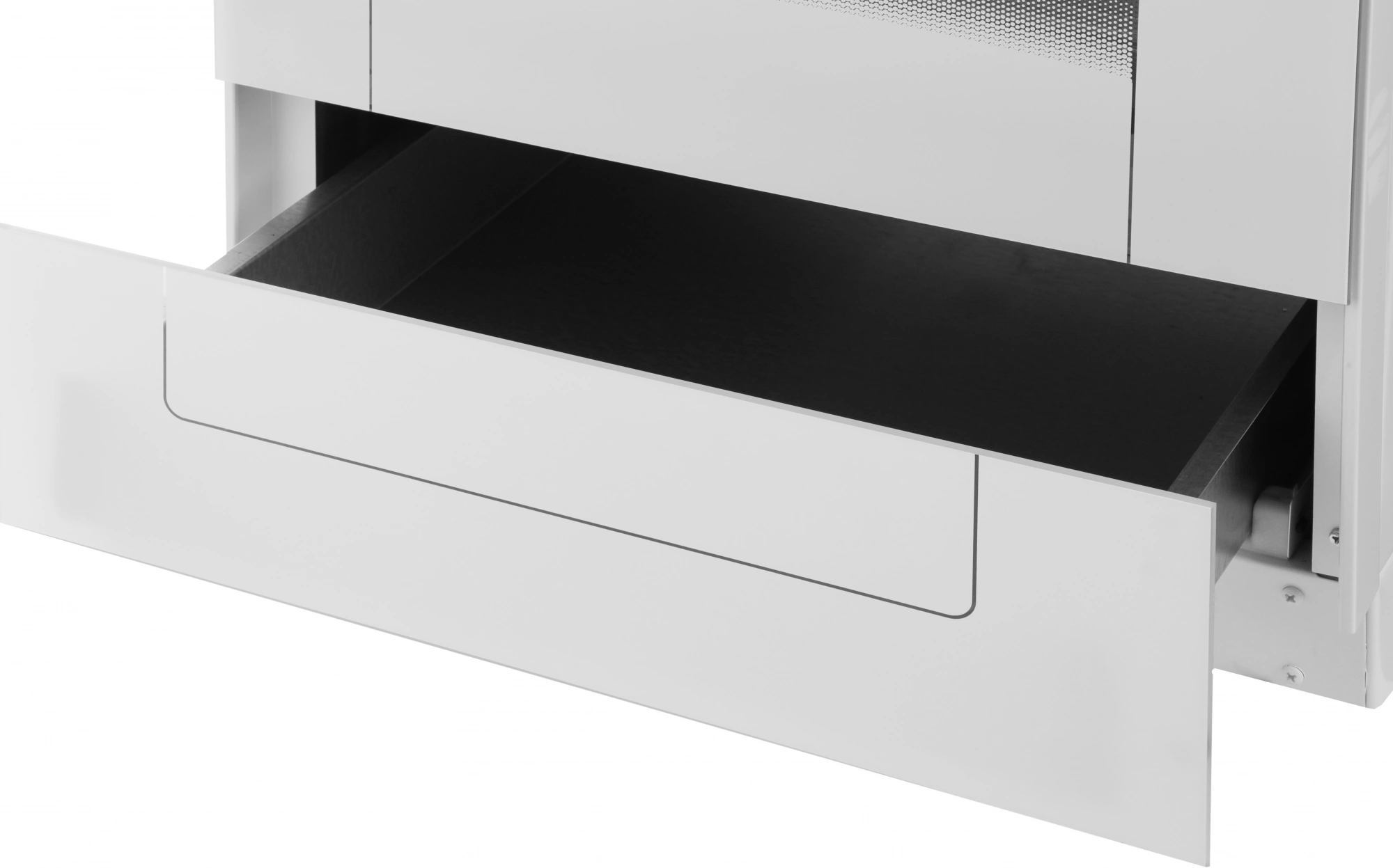 Стеклянный фасад выдвижного ящика для посуды. Подставка для посуды малого диаметра, противень, решетка.