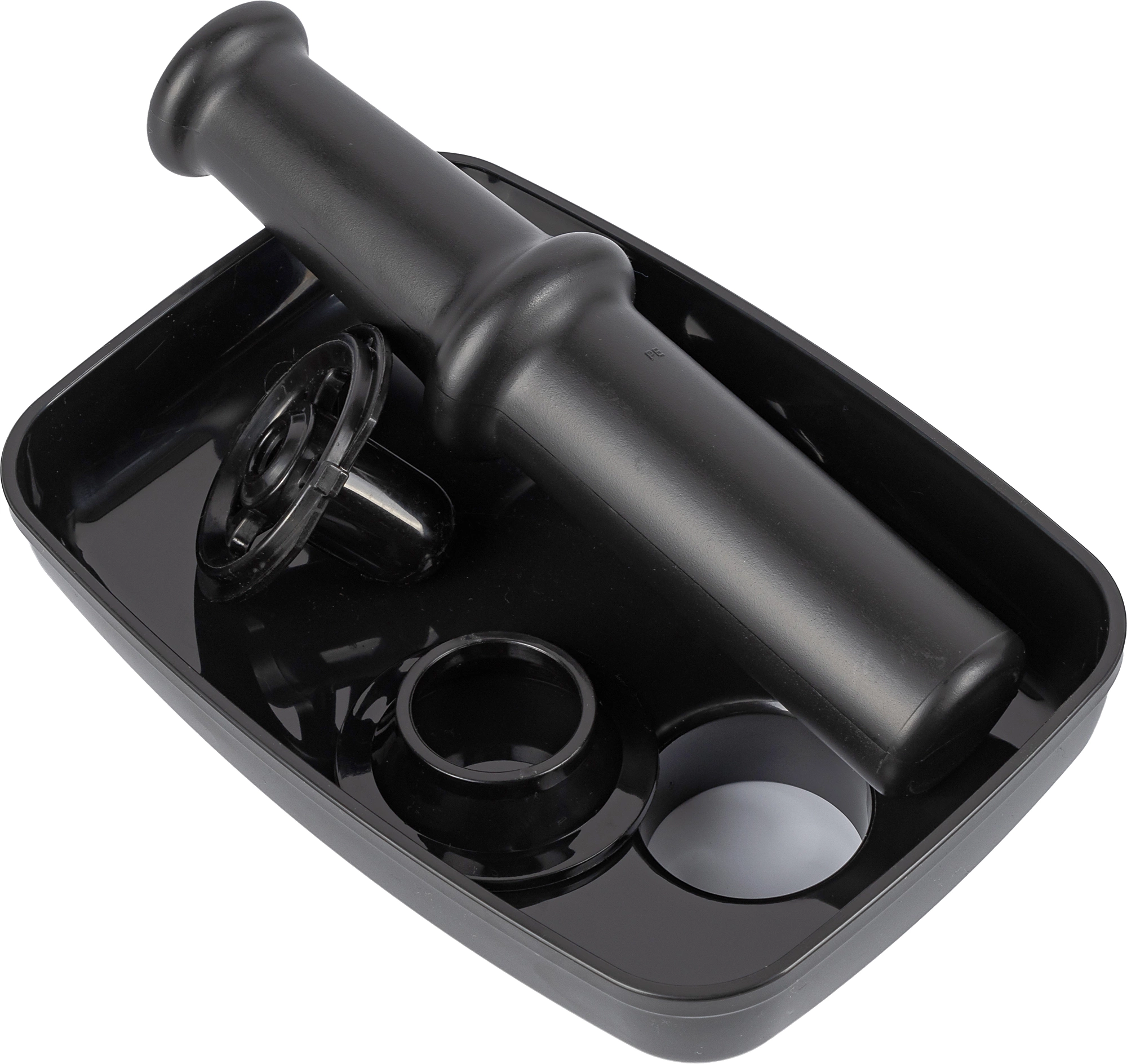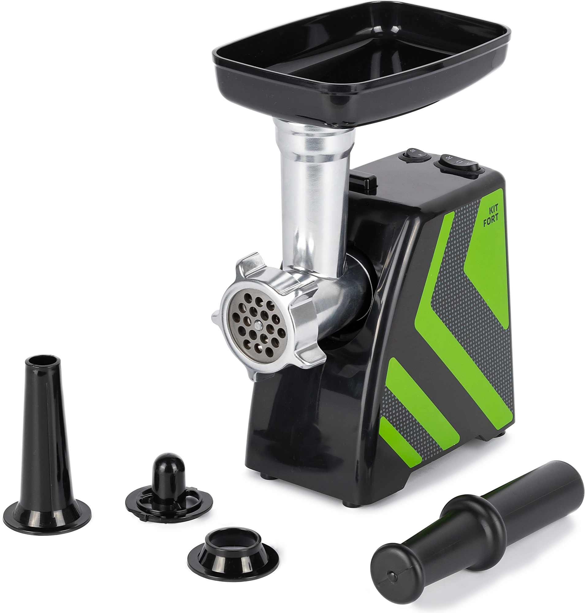 В комплект входят решетки для изготовления фарша с отверстиями 5 и 7 мм, а также специальные насадки для колбас и кеббе.