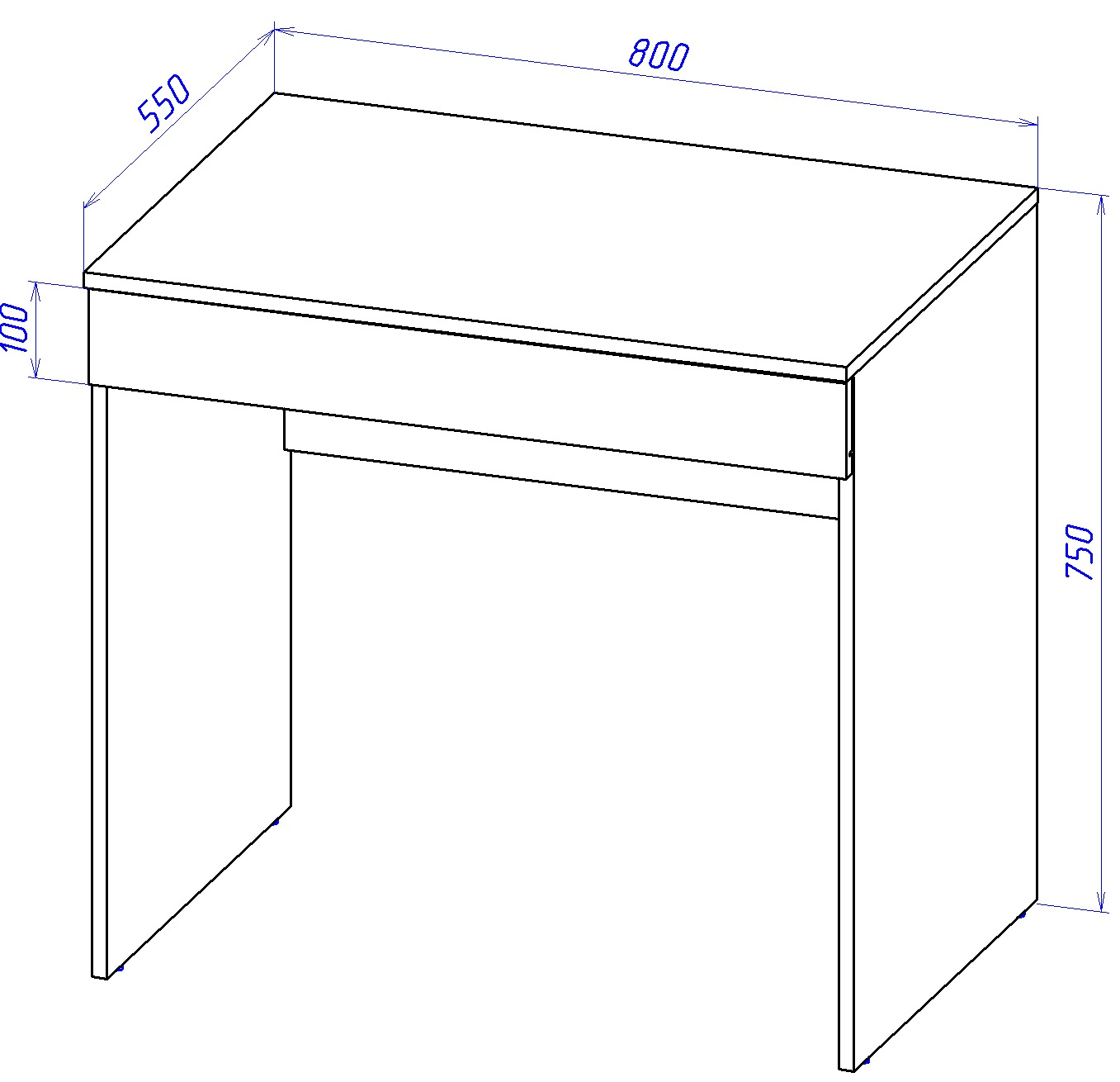 Простой и надежный письменный стол Рино. Он не займет много места и может использоваться как стол для ноутбука. Простые конструкции, отсутствие лишних деталей, эргономика и компактность – по доступной цене. Стол выполнен в современном стиле, имеет один выдвижной ящик без внешних ручек