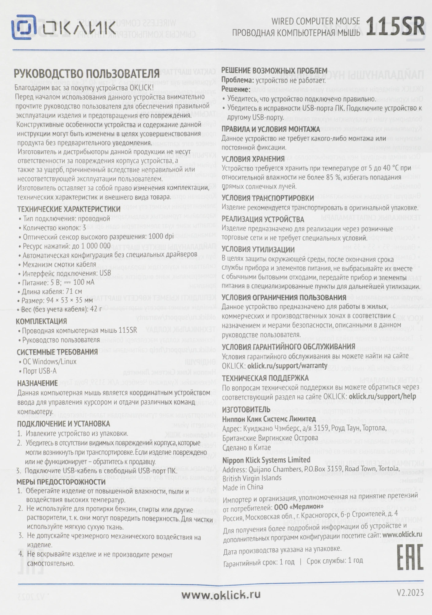 Модель Oklick 115SR – отличный выбор среди компьютерных мышей.