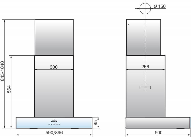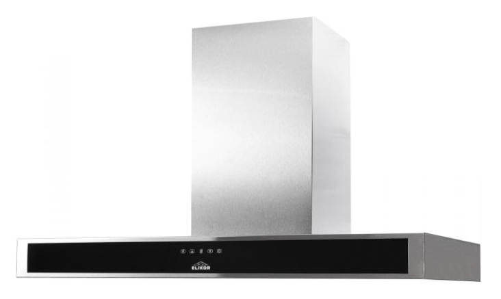 Панель управления с сенсорами расположена по центру фронтальной плоскости. Дизайн вытяжки кажется универсальным, ведь ее можно установить в большинство современных интерьеров. Для поверхностей из полированной нержавеющей стали используется специальная технология обработки scotch – bright.