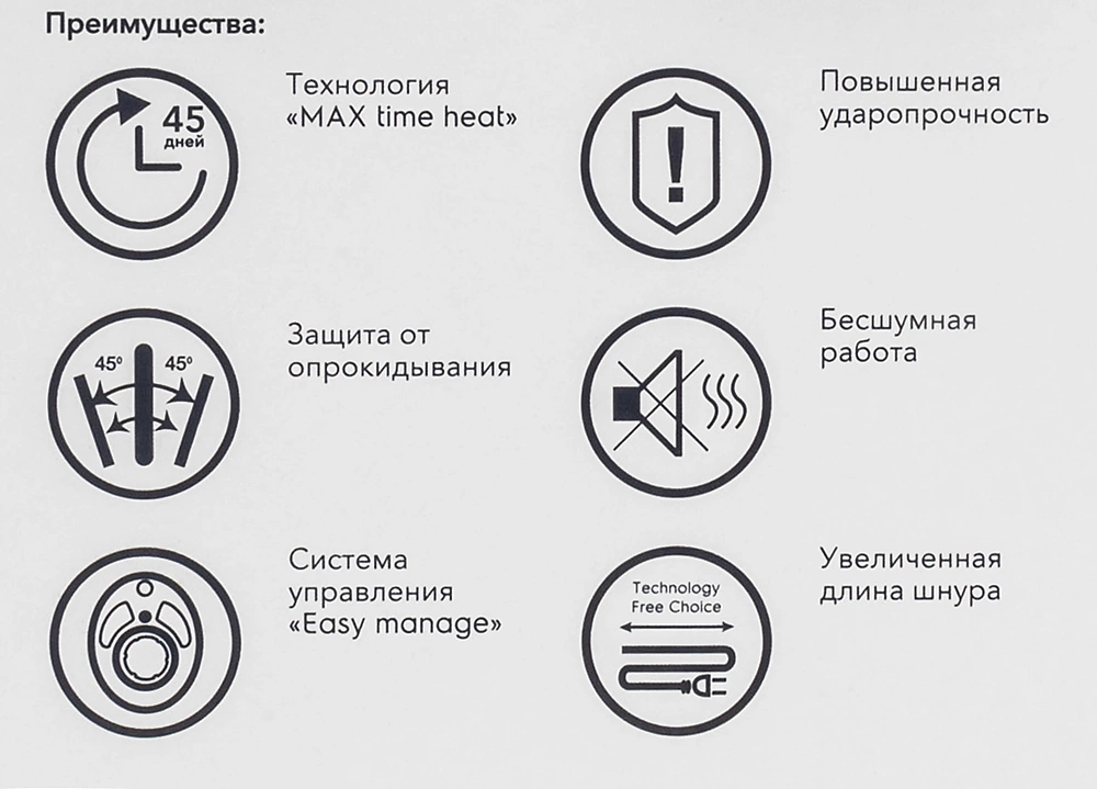 Технология "MAX time heat", система интуитивного управления "Easy manage", система управления движением "Тор motion".