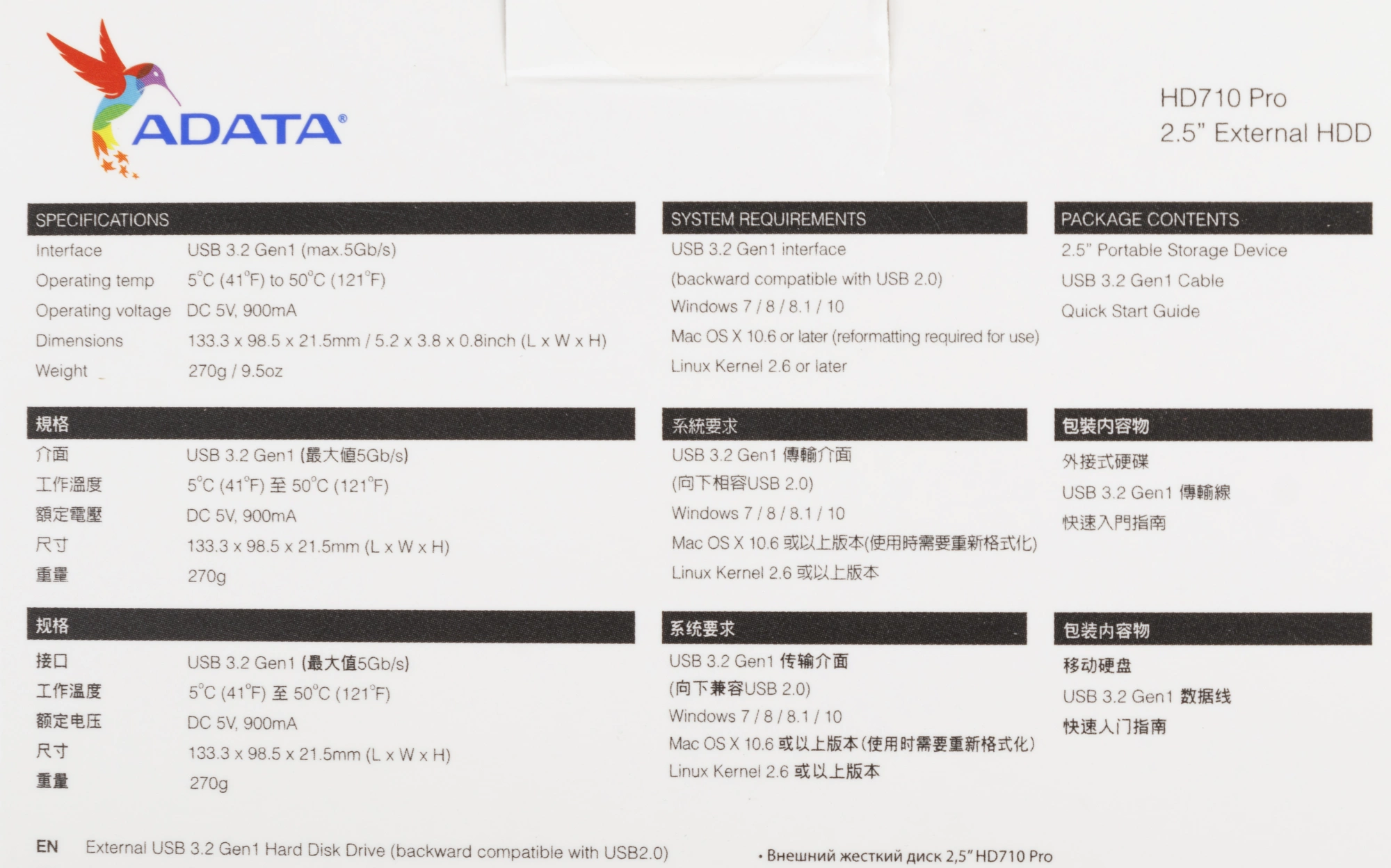 Жесткий диск A-Data USB3.0 2TB AHD710P-2TU31-CYL HD710Pro