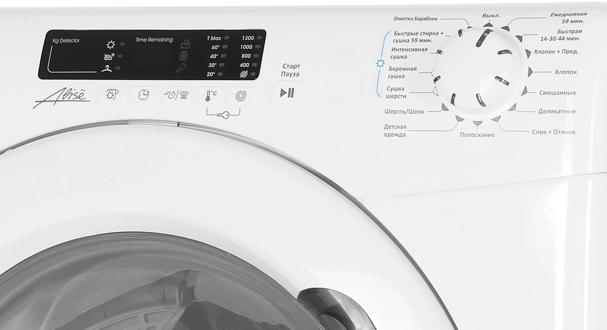 Шерсть/Шелк, Хлопок + Предварительная, Шерсть (Сушка), Интенсивная сушка, Бережная сушка, Быстрая 44/30/14, Детская, Деликатная, Смешанные, Ежедневная, Стирка +Сушка, Полоскание, Слив + Отжим, Очистка Барабана, Сушка