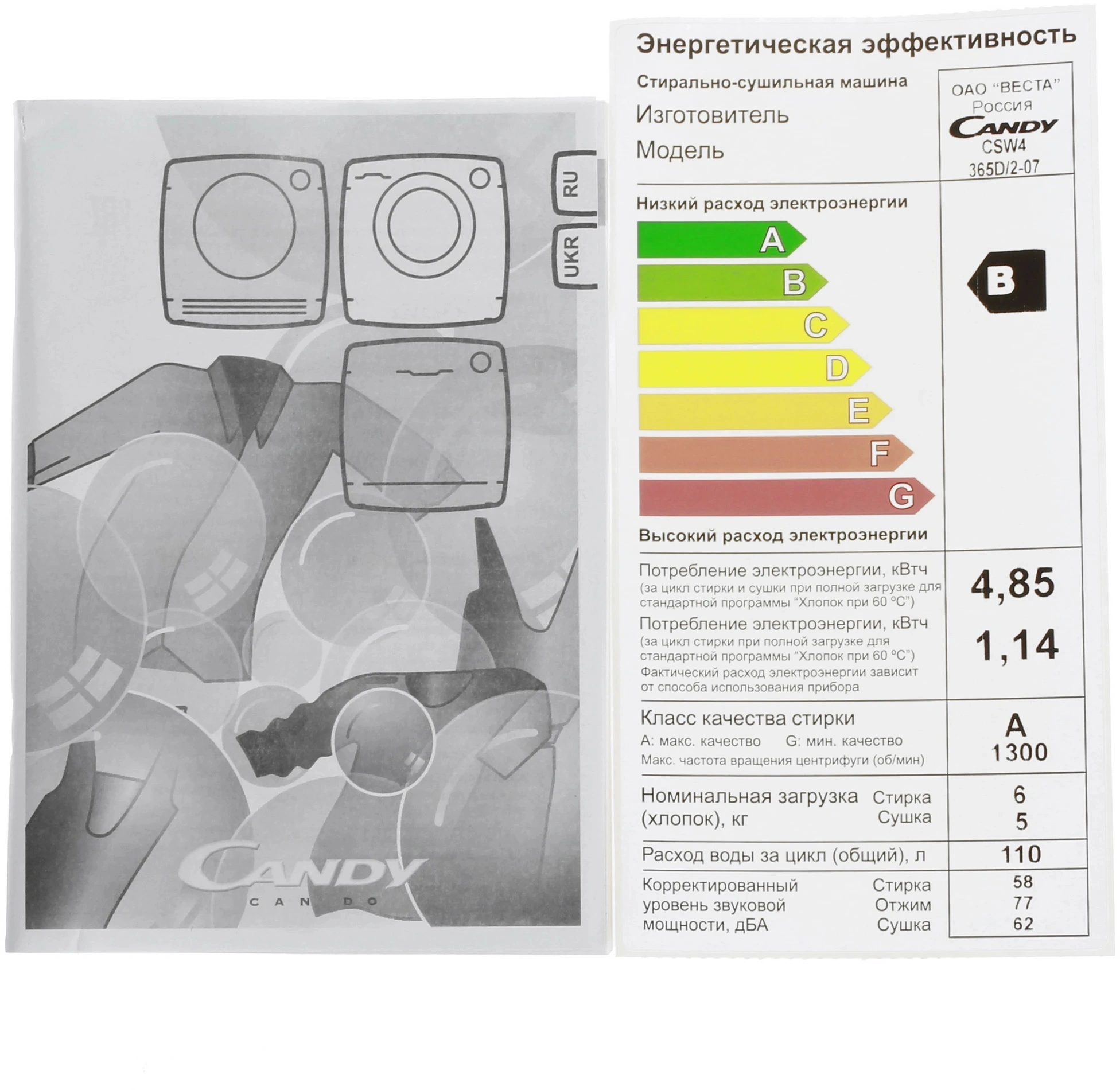 класс: B загр.фронтальная макс.:6кг (с сушкой) бел...